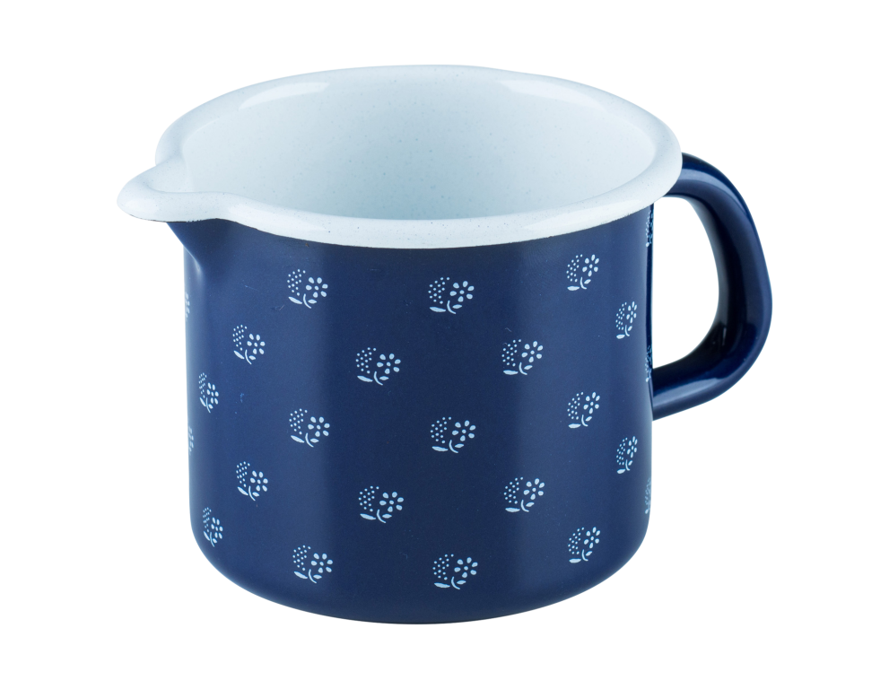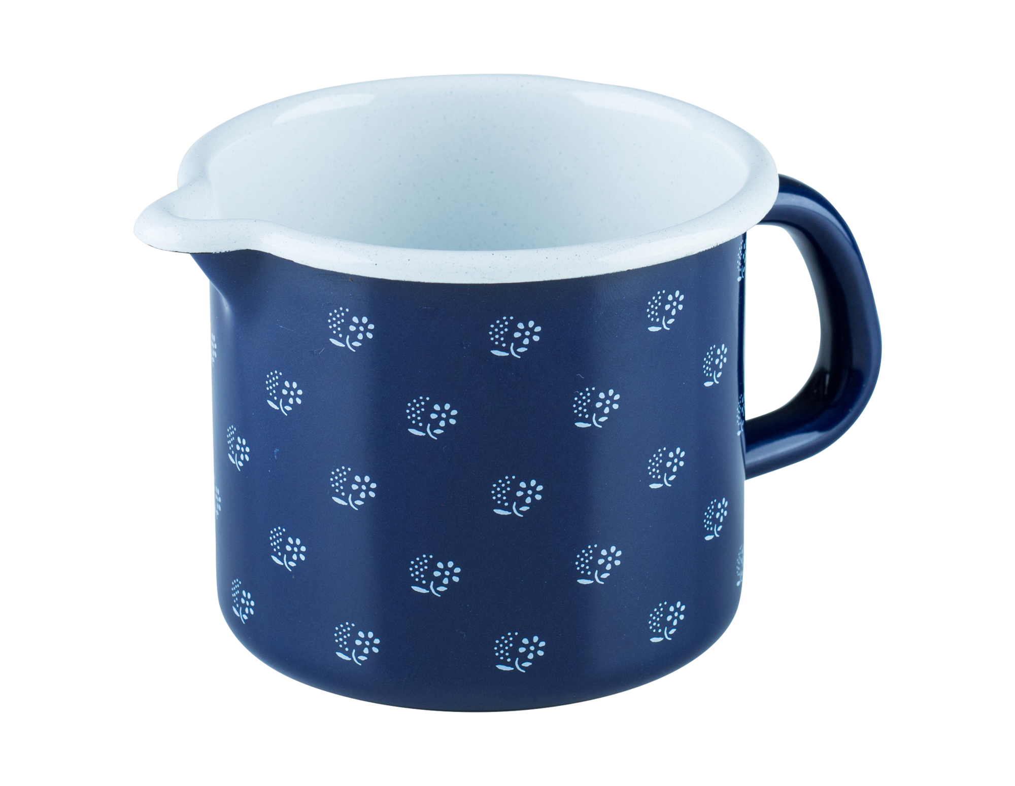 Emaille im Dirndlkleid – in drei blau/weißen Variationen: pünktchenblau, dirndlblau, blümchenblau