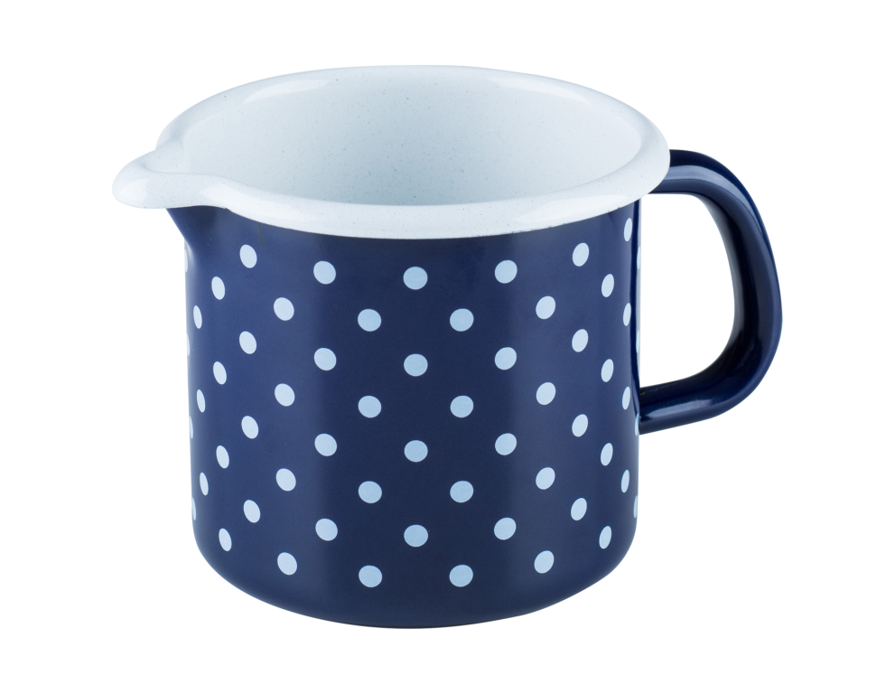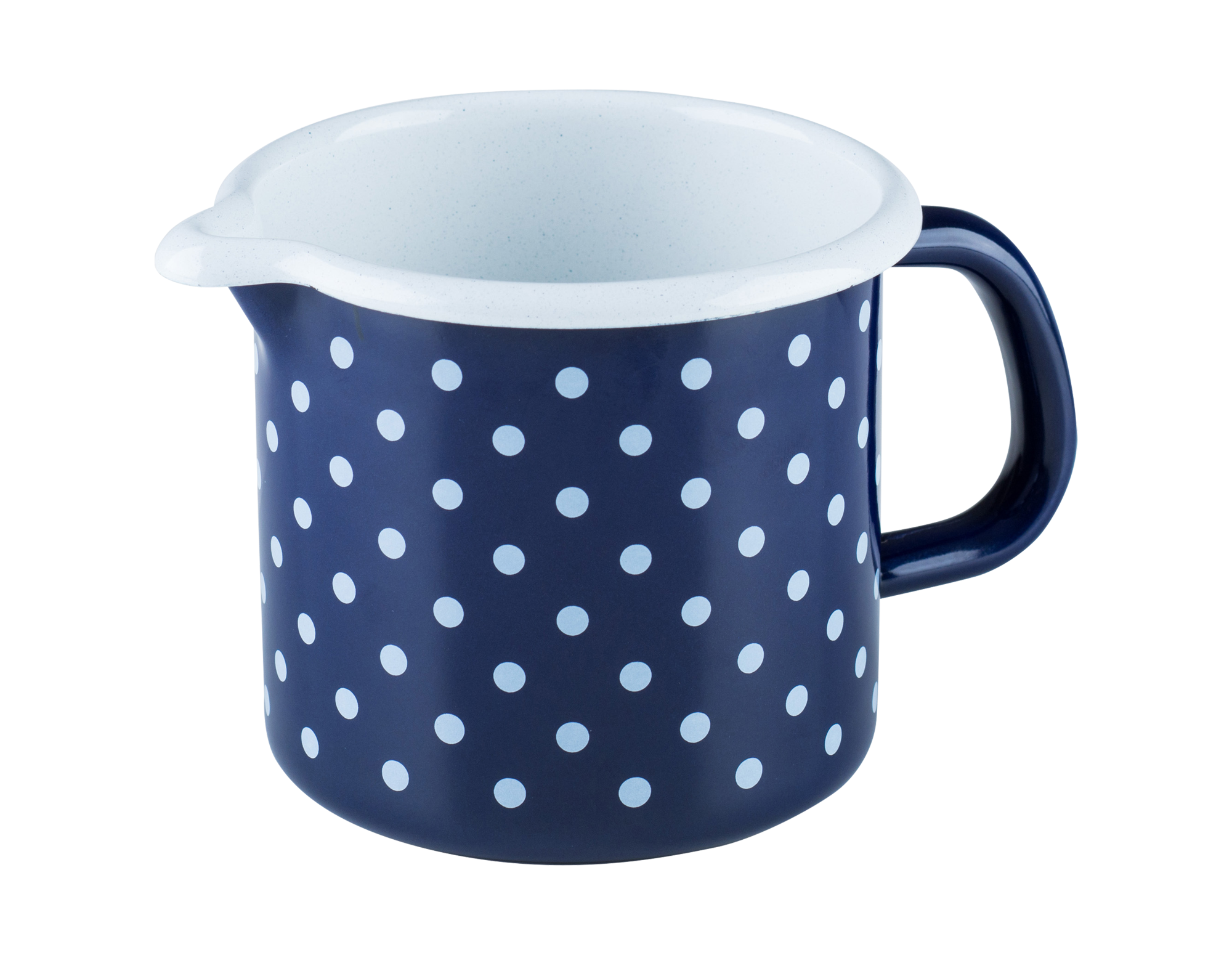 Emaille im Dirndlkleid – in drei blau/weißen Variationen: pünktchenblau, dirndlblau, blümchenblau