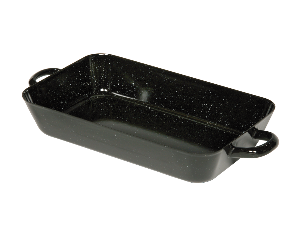 Diese werden von uns in Profi-Emaille getaucht, das ist ein sehr spezielles Schwarz mit klitzekleinen weißen Sprenkeln. Die Serie hat die richtigen Formen, für alles was man im Backrohr brät. Man kennt sie, man liebt sie, besonders wenn man seine Lieben in großer Zahl bekocht.