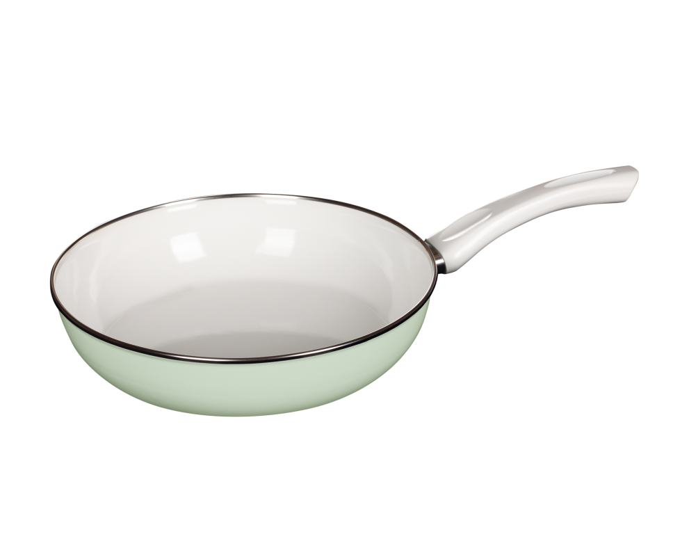 Emaille ist als Werkstoff auch wunderbar zum Braten geeignet. Die langlebigen Pfannen mit ergonomischem Kunststoffgriff gibt es in vielen Farben und Größen.
