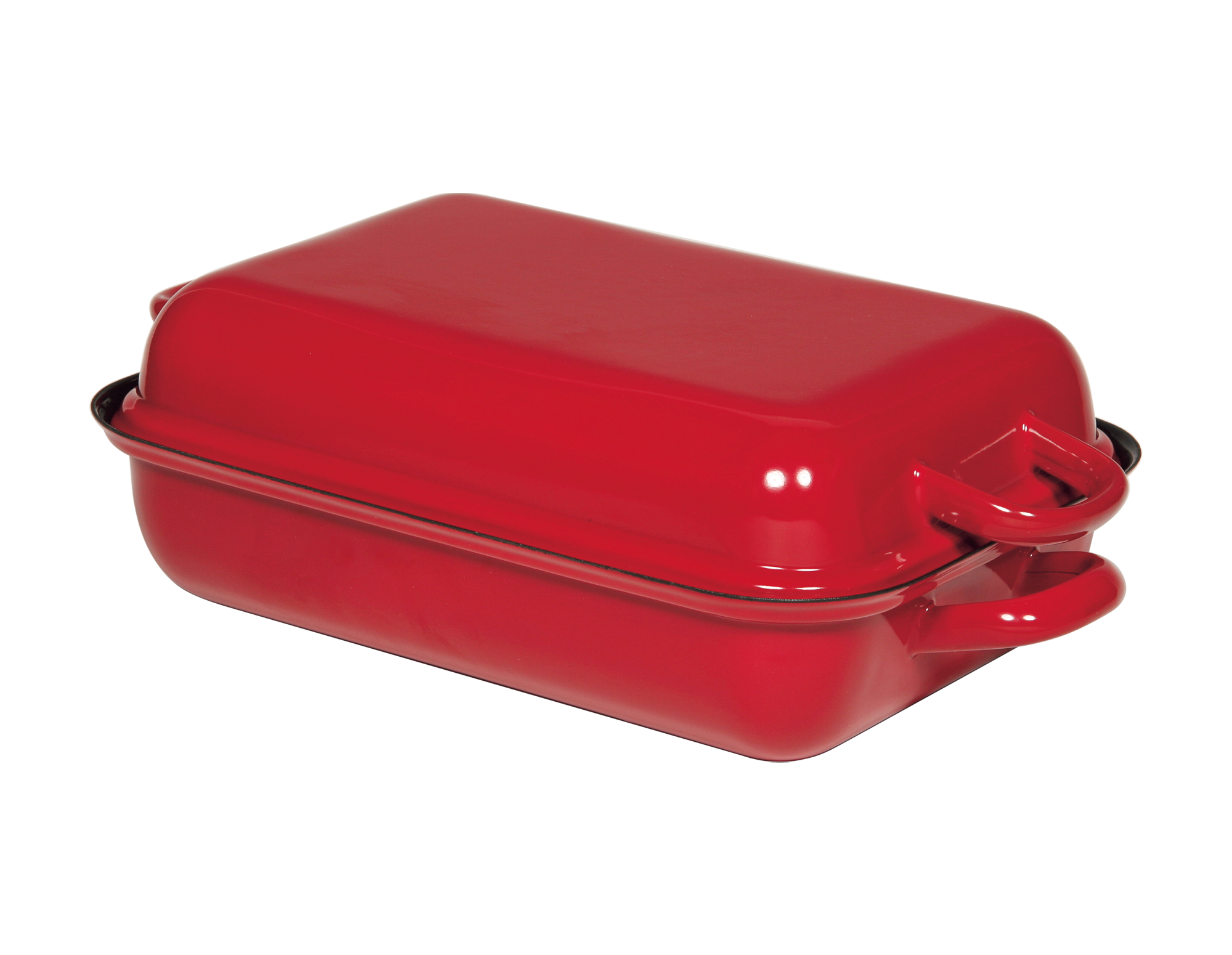 Unsere traditionelle Emaille-Bratform mit ihren typischen zwei Tragegriffen und Deckel weckt bei vielen Erinnerungen an Omas sonntäglichen Schweinsbraten aus dem „Bratenreindl“. Diese Bratform ist ideal zum stundenlangen Schmoren von Fleisch. Der Deckel schließt dank des Falzes im unteren Bräterteil perfekt und ist ebenfalls mit zwei Griffen ausgestattet. Beim Abnehmen des Deckels wird die Verwendung von Topflappen wärmstens empfohlen. Der Braten kann in der Form problemlos geschnitten werden, und nach dem Mahl ist der Bräter aus Emaille einfach zu reinigen. Die Emaille bewahrt die Aromen und der Deckel hält die Flüssigkeit zurück. Ein weiterer Vorteil ist, dass man mit diesem Stück zwei Backformen in einem hat: Der Deckel kann bei Bedarf als zusätzliche Back- und Bratform verwendet werden. Herrliche Braten und Schmorgerichte gelingen perfekt in dieser Bratpfanne mit Deckel. Die beiden Teile können auch separat für süße und herzhafte Aufläufe und ähnliche Gerichte verwendet werden. Wird ein Teil der Bratpfanne als Backform genutzt, sollte sie stets gut eingefettet und mit Mehl oder Bröseln bestreut werden, um ein Ankleben zu verhindern und das Herausnehmen der Kuchen und Co. zu erleichtern.