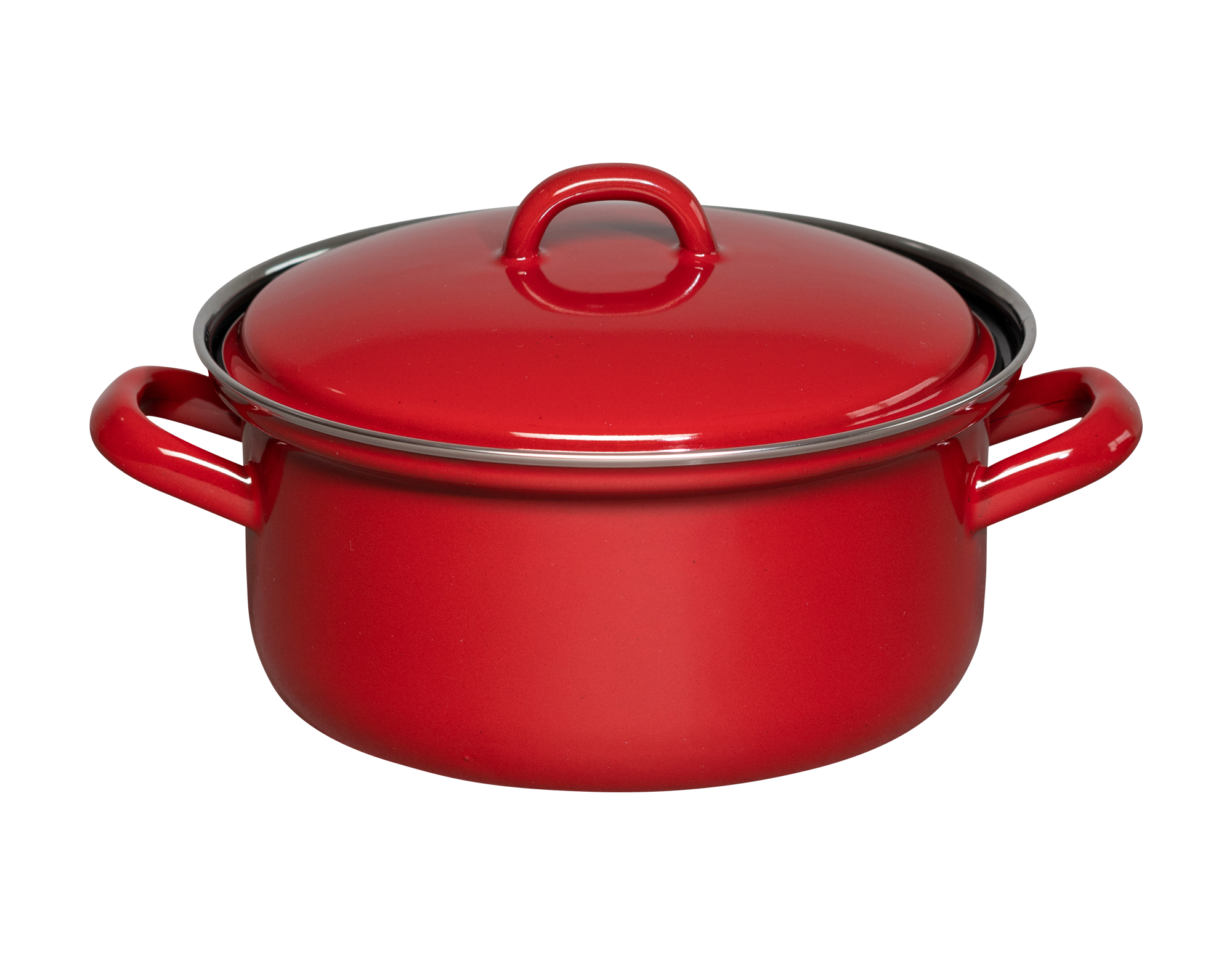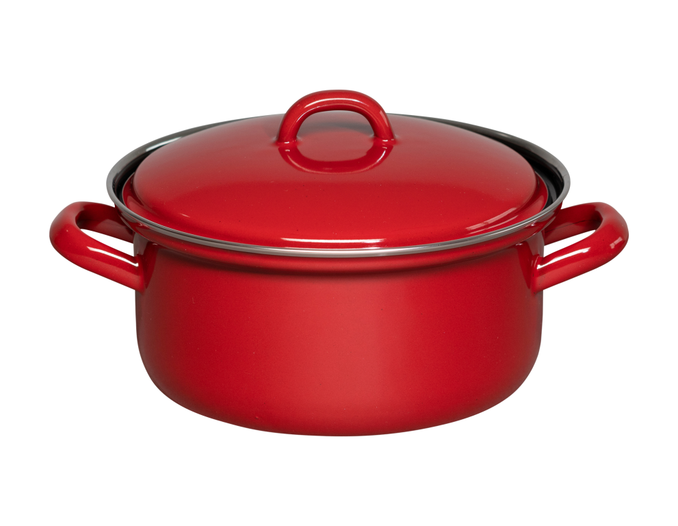 Unsere klassischen Emaille-Kasserollen mit Deckel zeichnen sich durch ihre gerade Form und die traditionellen Emaillegriffe aus. Der Deckel sitzt fest auf der Kasserolle und dient als Energiewächter: Sobald der Deckel zu klappern beginnt, ist es Zeit, die Hitze zu reduzieren und so Strom zu sparen. Je nach Herd kann etwa 5 Minuten vor Garende vollständig abgeschaltet werden, da Emaille die Hitze lange speichert. Daher empfehlen wir dringend, Topflappen zum Heben der Töpfe und Deckel zu verwenden, da auch die Emaillegriffe die Wärme speichern. Ein weiterer Vorteil der Emaillegriffe ist, dass man den Topf auch problemlos zum Warmhalten in den Backofen schieben kann. Der Rand der Kasserolle ist mit einem robusten Chromrand versehen. Die Kasserolle mit Deckel ist je nach Farbe und Dekor in verschiedenen Größen erhältlich und gehört zur Basisausstattung jeder Küche.