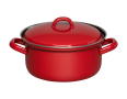 Strahlendes Rot außen – die Farbe der Liebe (die bekanntlich durch den Magen geht) – und klassisches Schwarz innen: Produkte aus roter Emaille in Hülle und Fülle. Einem Koch- und Back- vergnügen in Rot steht somit nichts im Wege.