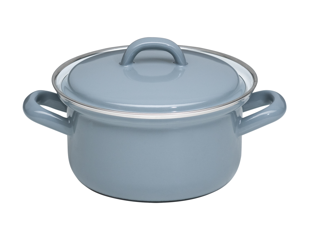 Unsere klassischen Emaille-Kasserollen mit Deckel zeichnen sich durch ihre gerade Form und die traditionellen Emaillegriffe aus. Der Deckel sitzt fest auf der Kasserolle und dient als Energiewächter: Sobald der Deckel zu klappern beginnt, ist es Zeit, die Hitze zu reduzieren und so Strom zu sparen. Je nach Herd kann etwa 5 Minuten vor Garende vollständig abgeschaltet werden, da Emaille die Hitze lange speichert. Daher empfehlen wir dringend, Topflappen zum Heben der Töpfe und Deckel zu verwenden, da auch die Emaillegriffe die Wärme speichern. Ein weiterer Vorteil der Emaillegriffe ist, dass man den Topf auch problemlos zum Warmhalten in den Backofen schieben kann. Der Rand der Kasserolle ist mit einem robusten Chromrand versehen. Die Kasserolle mit Deckel ist je nach Farbe und Dekor in verschiedenen Größen erhältlich und gehört zur Basisausstattung jeder Küche.