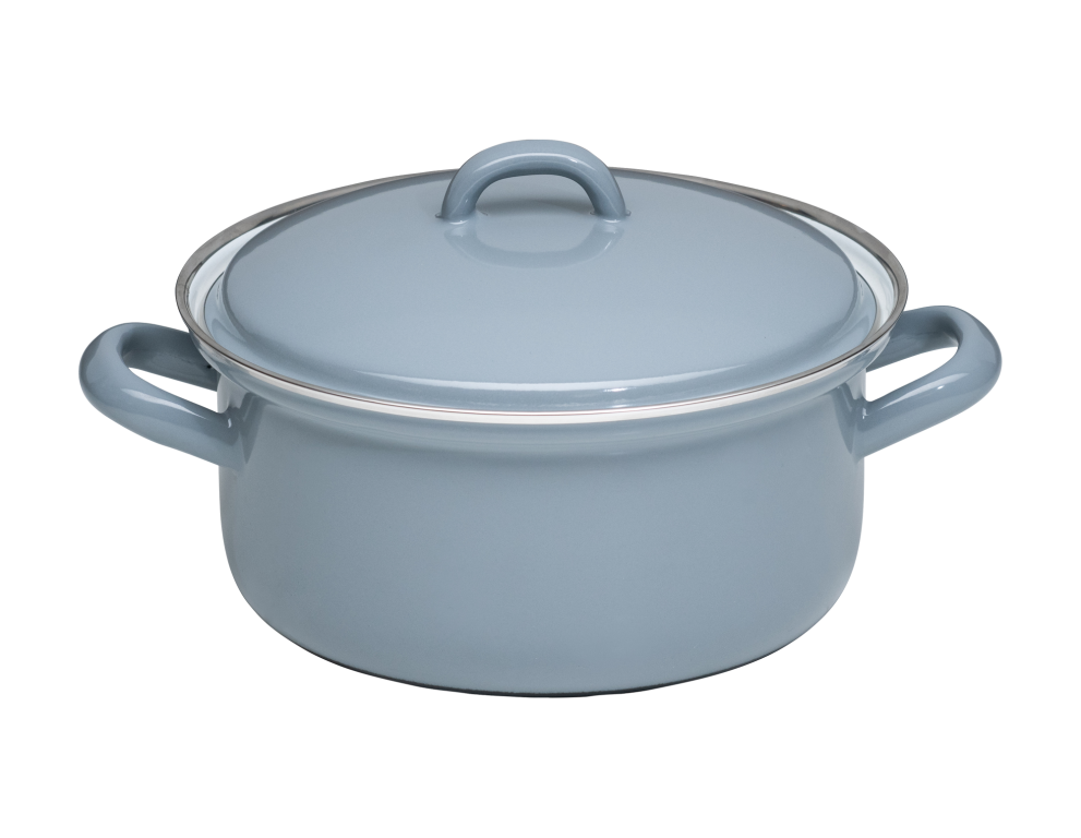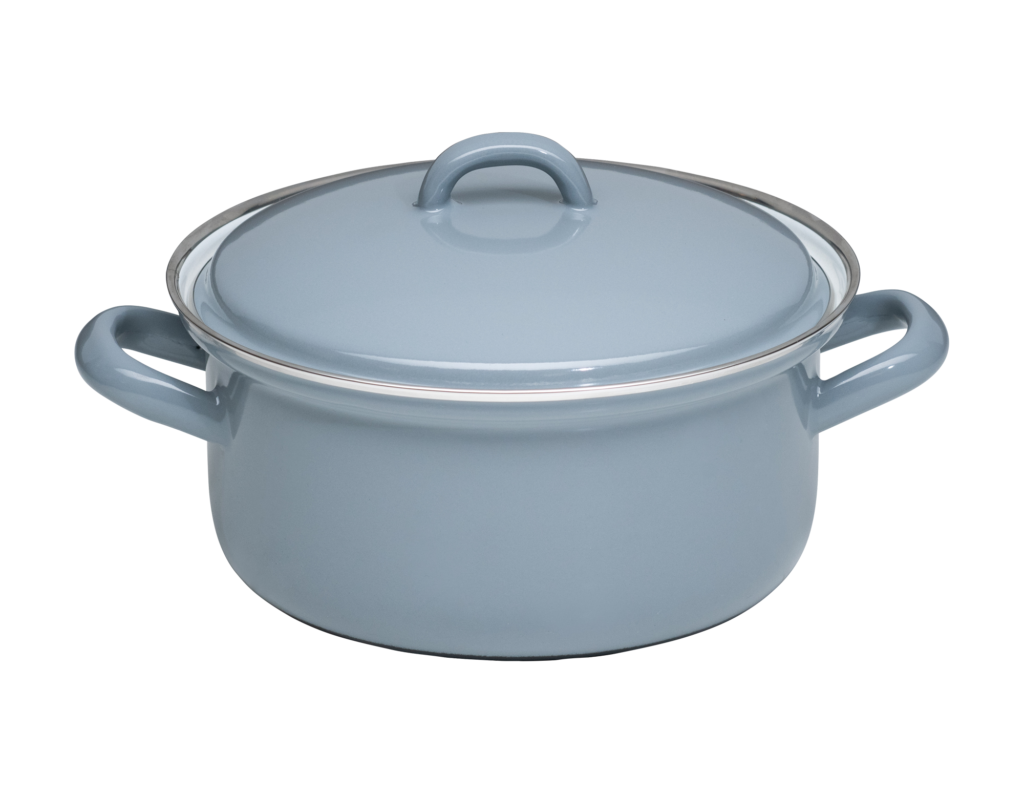 Unsere klassischen Emaille-Kasserollen mit Deckel zeichnen sich durch ihre gerade Form und die traditionellen Emaillegriffe aus. Der Deckel sitzt fest auf der Kasserolle und dient als Energiewächter: Sobald der Deckel zu klappern beginnt, ist es Zeit, die Hitze zu reduzieren und so Strom zu sparen. Je nach Herd kann etwa 5 Minuten vor Garende vollständig abgeschaltet werden, da Emaille die Hitze lange speichert. Daher empfehlen wir dringend, Topflappen zum Heben der Töpfe und Deckel zu verwenden, da auch die Emaillegriffe die Wärme speichern. Ein weiterer Vorteil der Emaillegriffe ist, dass man den Topf auch problemlos zum Warmhalten in den Backofen schieben kann. Der Rand der Kasserolle ist mit einem robusten Chromrand versehen. Die Kasserolle mit Deckel ist je nach Farbe und Dekor in verschiedenen Größen erhältlich und gehört zur Basisausstattung jeder Küche.