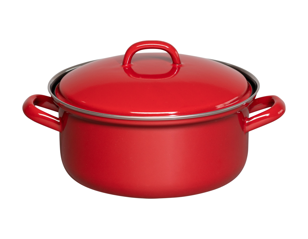 Strahlendes Rot außen – die Farbe der Liebe (die bekanntlich durch den Magen geht) – und klassisches Schwarz innen: Produkte aus roter Emaille in Hülle und Fülle. Einem Koch- und Back- vergnügen in Rot steht somit nichts im Wege.