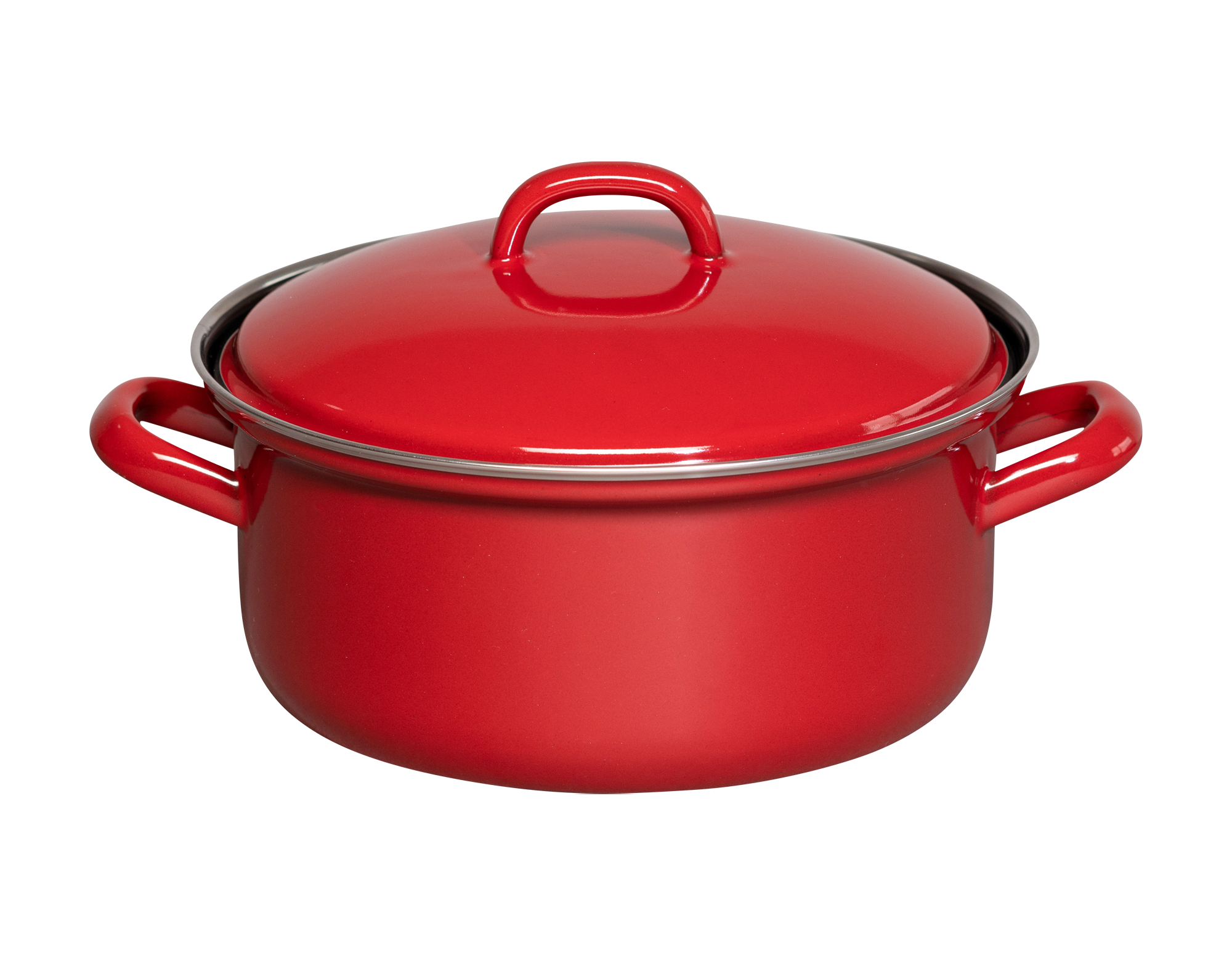 Unsere klassischen Emaille-Kasserollen mit Deckel zeichnen sich durch ihre gerade Form und die traditionellen Emaillegriffe aus. Der Deckel sitzt fest auf der Kasserolle und dient als Energiewächter: Sobald der Deckel zu klappern beginnt, ist es Zeit, die Hitze zu reduzieren und so Strom zu sparen. Je nach Herd kann etwa 5 Minuten vor Garende vollständig abgeschaltet werden, da Emaille die Hitze lange speichert. Daher empfehlen wir dringend, Topflappen zum Heben der Töpfe und Deckel zu verwenden, da auch die Emaillegriffe die Wärme speichern. Ein weiterer Vorteil der Emaillegriffe ist, dass man den Topf auch problemlos zum Warmhalten in den Backofen schieben kann. Der Rand der Kasserolle ist mit einem robusten Chromrand versehen. Die Kasserolle mit Deckel ist je nach Farbe und Dekor in verschiedenen Größen erhältlich und gehört zur Basisausstattung jeder Küche.