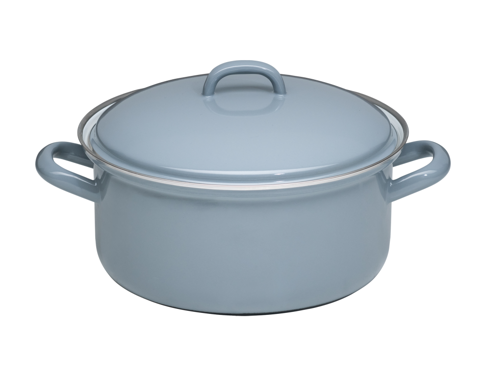 Unsere klassischen Emaille-Kasserollen mit Deckel zeichnen sich durch ihre gerade Form und die traditionellen Emaillegriffe aus. Der Deckel sitzt fest auf der Kasserolle und dient als Energiewächter: Sobald der Deckel zu klappern beginnt, ist es Zeit, die Hitze zu reduzieren und so Strom zu sparen. Je nach Herd kann etwa 5 Minuten vor Garende vollständig abgeschaltet werden, da Emaille die Hitze lange speichert. Daher empfehlen wir dringend, Topflappen zum Heben der Töpfe und Deckel zu verwenden, da auch die Emaillegriffe die Wärme speichern. Ein weiterer Vorteil der Emaillegriffe ist, dass man den Topf auch problemlos zum Warmhalten in den Backofen schieben kann. Der Rand der Kasserolle ist mit einem robusten Chromrand versehen. Die Kasserolle mit Deckel ist je nach Farbe und Dekor in verschiedenen Größen erhältlich und gehört zur Basisausstattung jeder Küche.
