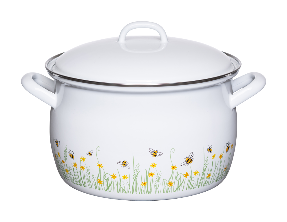 Unsere Fleischtöpfe mit Deckel haben eine bauchige Form und zwei Emaillegriffe. Der Rand der Kochtöpfe ist mit einem robusten Chromrand versehen. Die Deckel der Kochtöpfe liegen gut auf dem Topf und dienen als Energiewächter: Sobald der Deckel zu klappern beginnt, ist es Zeit, die Hitze zu reduzieren und so Strom zu sparen. Je nach Herd kann etwa 5 Minuten vor Garende vollständig abgeschaltet werden, da Emaille die Hitze lange speichert. Daher empfehlen wir, stets Topflappen zum Heben der Kochtöpfe und Deckel zu verwenden, da auch die Emaillegriffe die Wärme speichern. Der Vorteil der Emaillegriffe ist jedoch, dass man den Topf problemlos zum Warmhalten in das Backrohr schieben kann. Der Fleischtopf ist ein hoher Kochtopf und daher ideal zum Kochen von Speisen mit viel Flüssigkeit, angefangen von Suppen, Suppenfleisch wie Tafelspitz, Eintopfgerichten bis zu Ragouts, Nudeln, Gemüse, Kartoffeln und vielem mehr.
