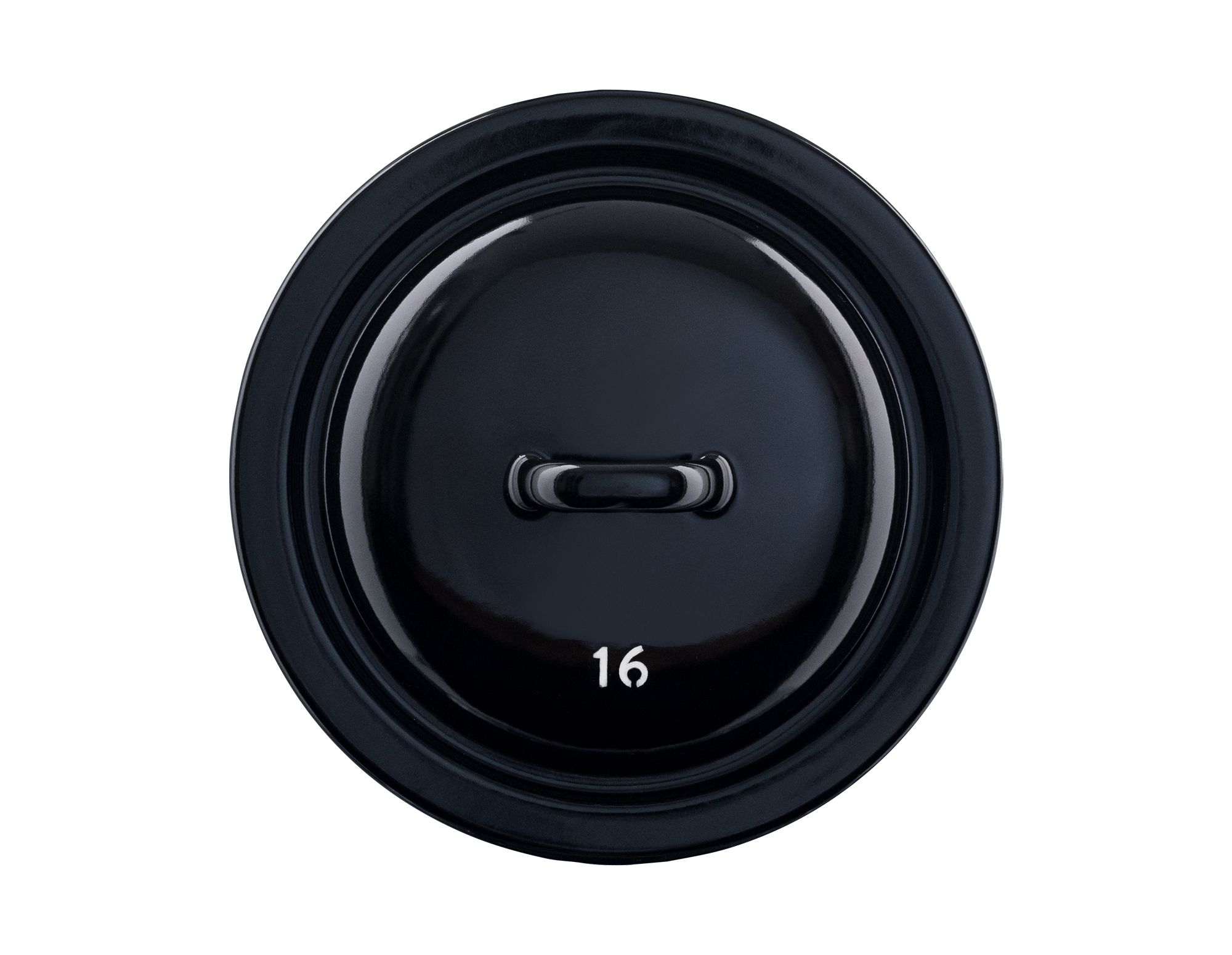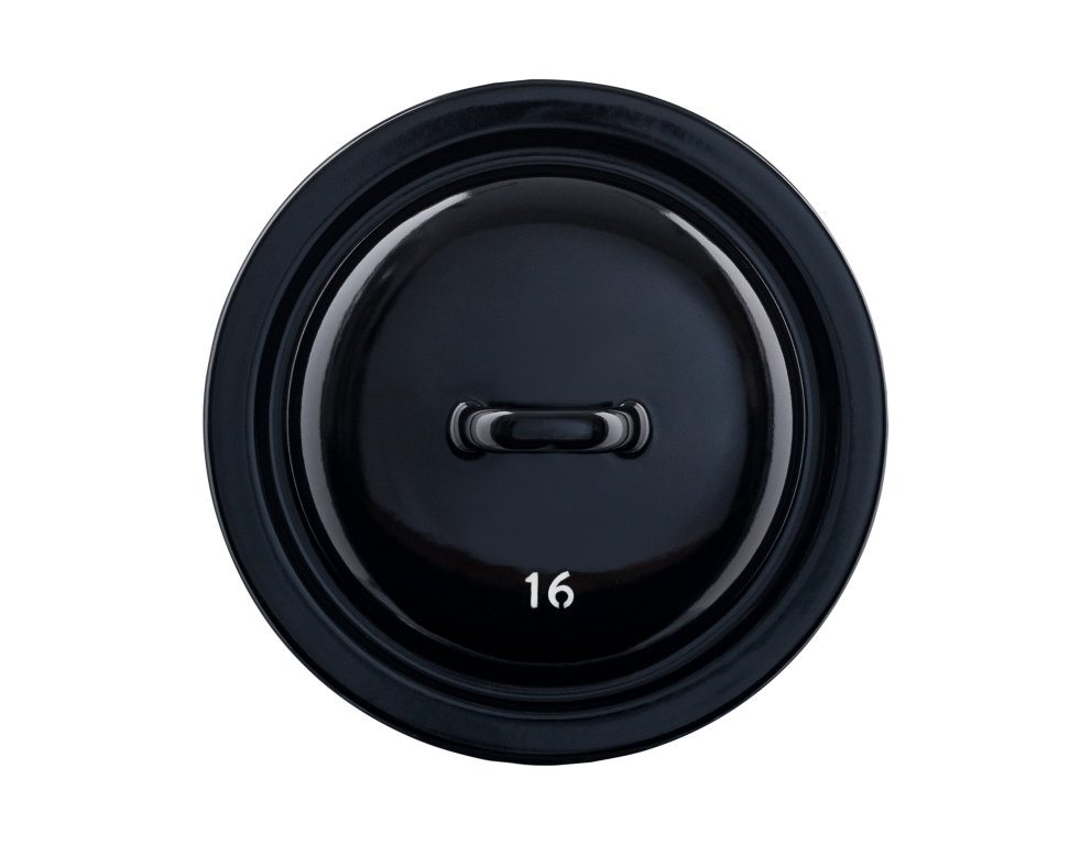 Der Emaille Deckel aus der Serie Riesen & Zwerge ist eine Neuauflage eines Klassikers, der aus extrastarkem Eisenblech gefertigt wird und bis maximal 400 °C backofengeeignet ist.