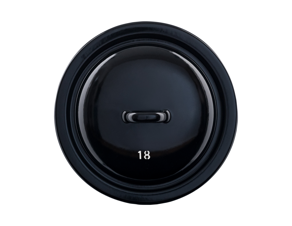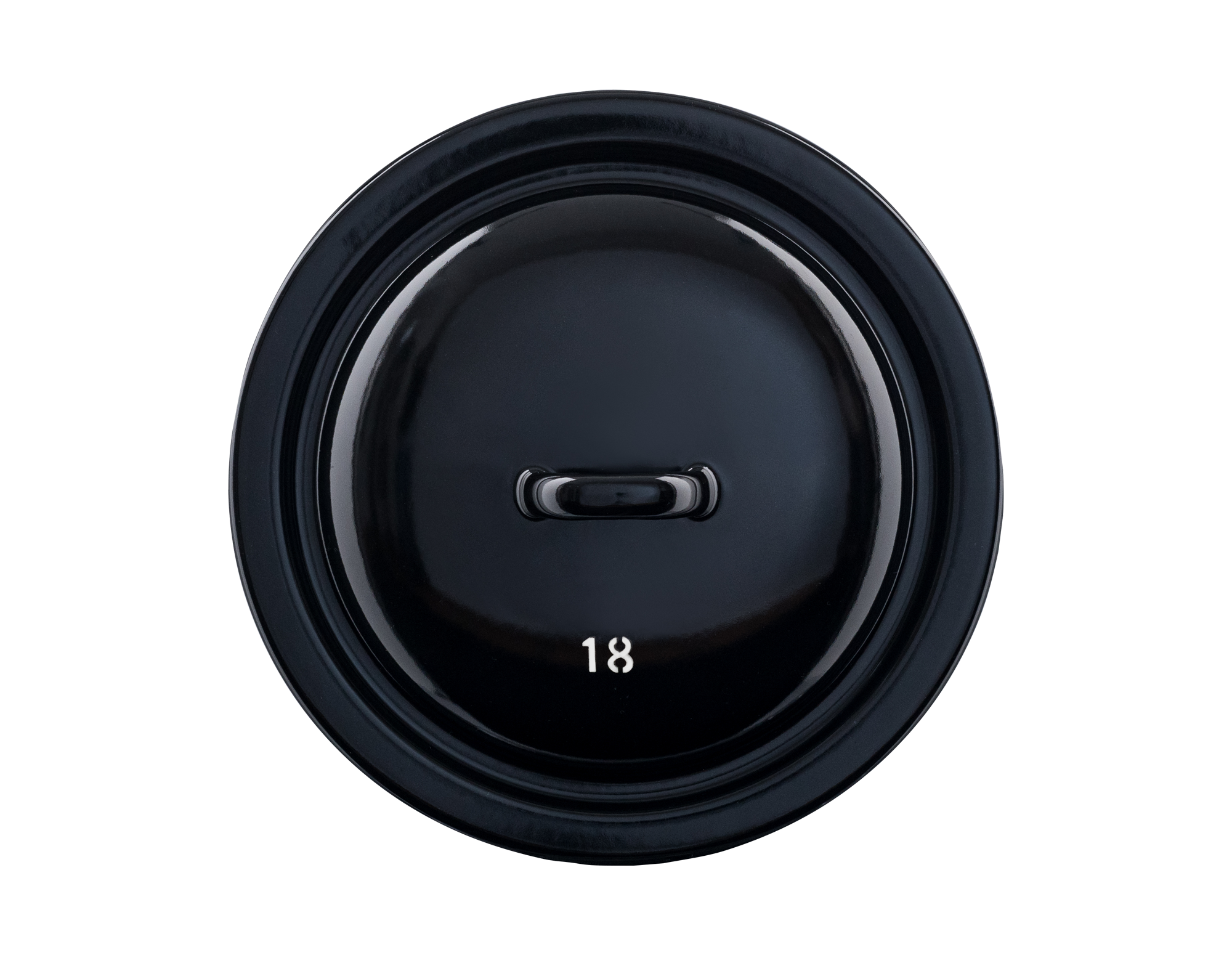 Der Emaille Deckel aus der Serie Riesen & Zwerge ist eine Neuauflage eines Klassikers, der aus extrastarkem Eisenblech gefertigt wird und bis maximal 400 °C backofengeeignet ist.