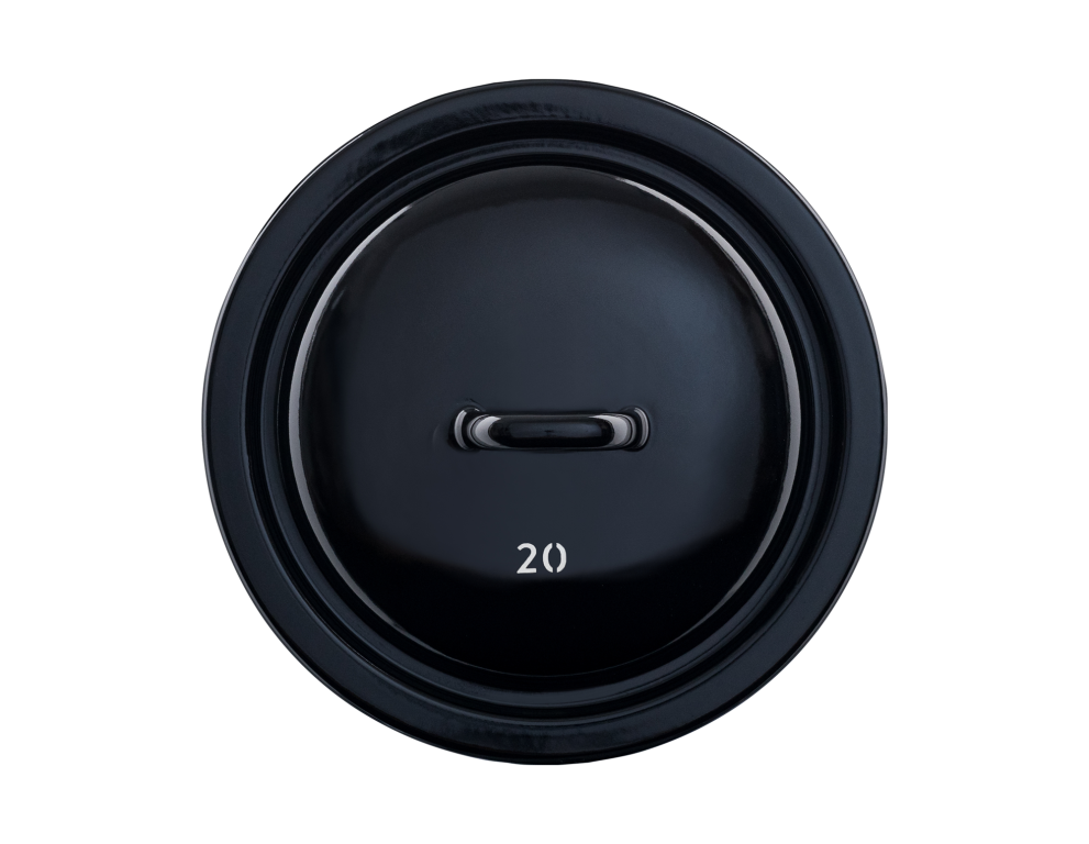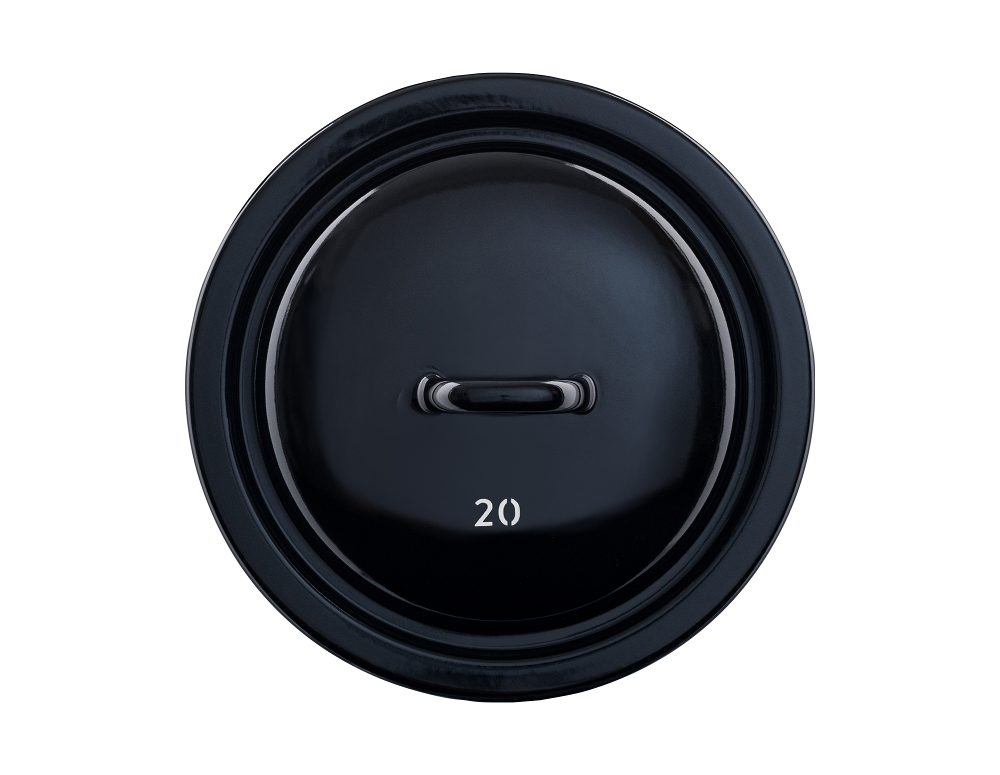 Der Emaille Deckel aus der Serie Riesen & Zwerge ist eine Neuauflage eines Klassikers, der aus extrastarkem Eisenblech gefertigt wird und bis maximal 400 °C backofengeeignet ist.