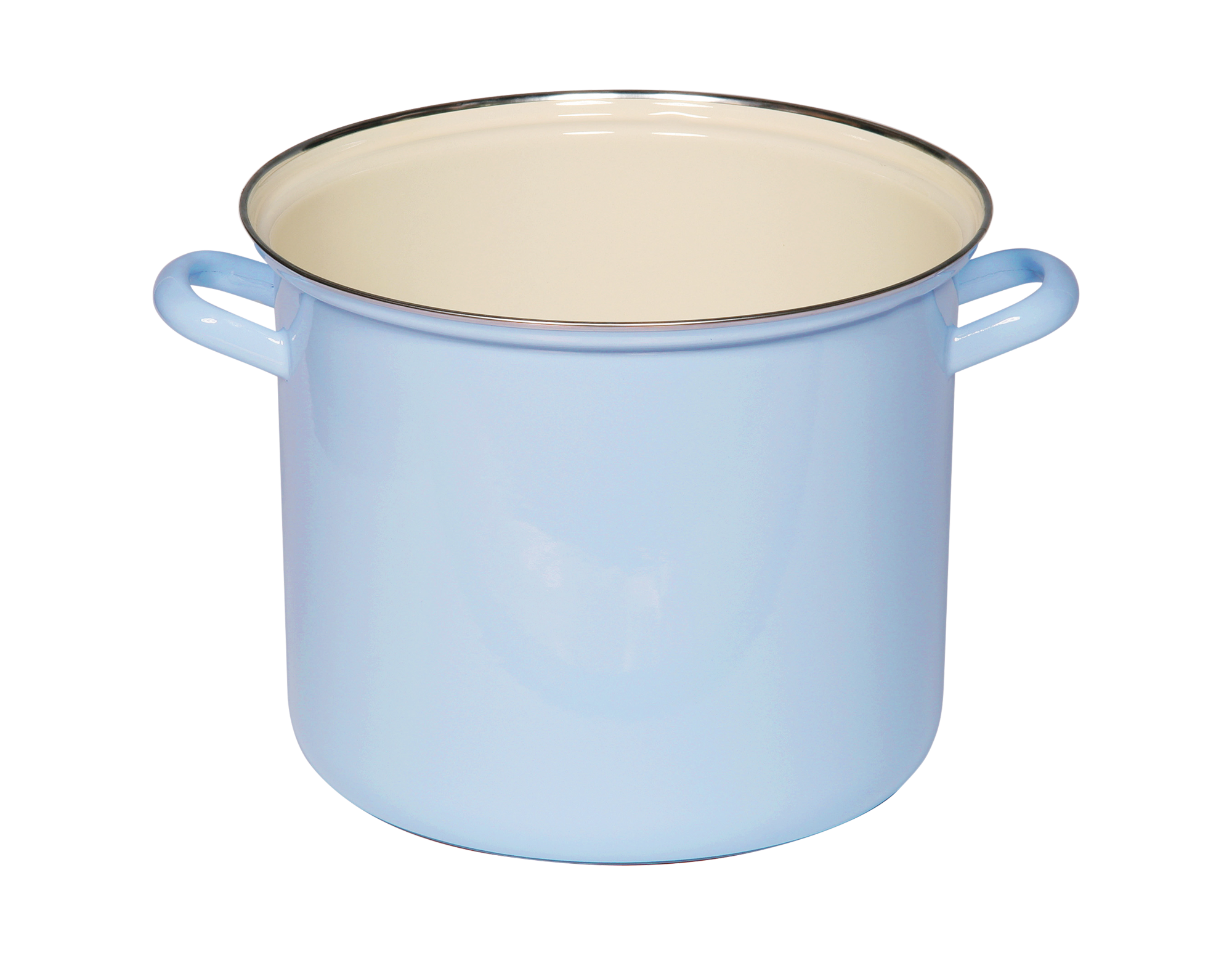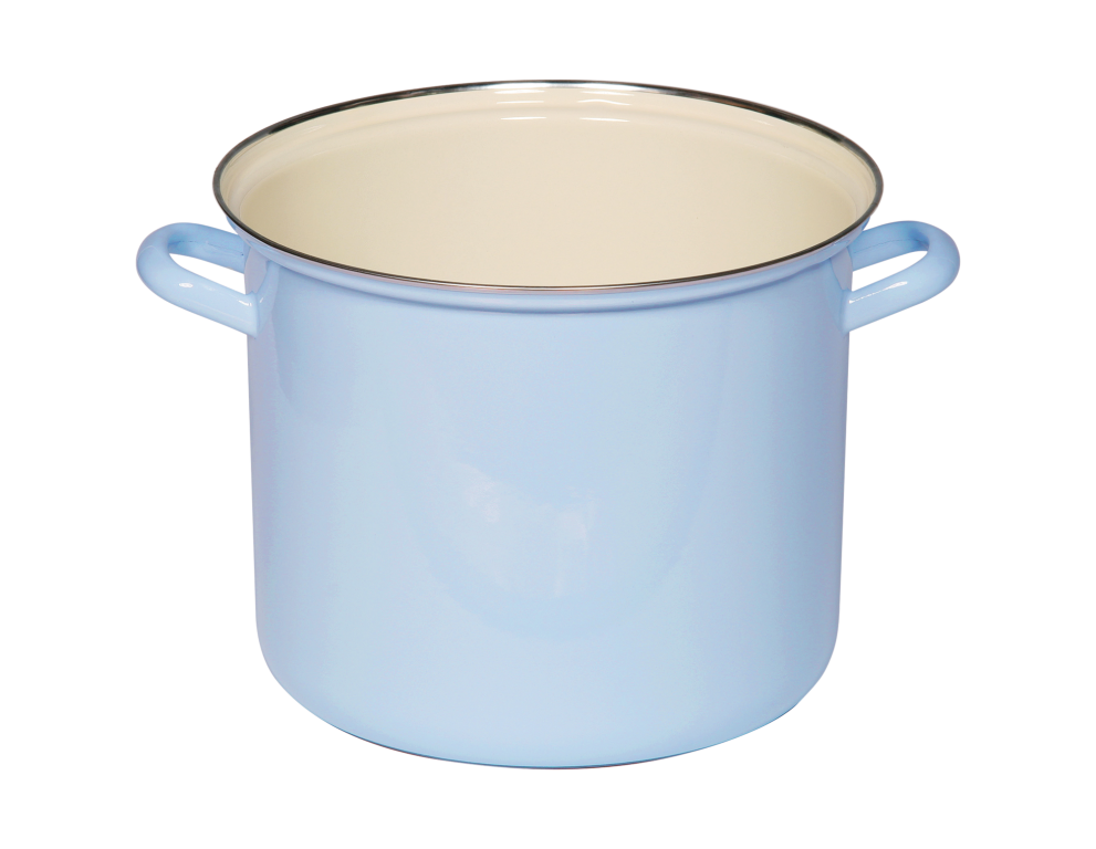 Die Deckel für die Kochtöpfe sind optional erhältlich und passen perfekt auf die Töpfe. Sie dienen als Energiewächter: Sobald der Deckel zu klappern beginnt, ist es Zeit, die Hitze zu reduzieren und so Strom zu sparen. Je nach Herd kann etwa 5 Minuten vor Garende vollständig abgeschaltet werden, da Emaille die Hitze lange speichert. Daher empfehlen wir, stets Topflappen zum Heben der Töpfe und Deckel zu verwenden, da auch die Emaillegriffe die Wärme speichern. Der Vorteil der Emaillegriffe ist, dass man den Topf auch problemlos zum Warmhalten in den Backofen schieben kann. Der Rand des Topfes ist mit einem robusten Chromrand versehen. Der Kochtopf mit Chromrand gehört zur Basisausstattung jeder Küche von Pastell-Liebhabern und überzeugt durch Funktionalität und elegantes Design.