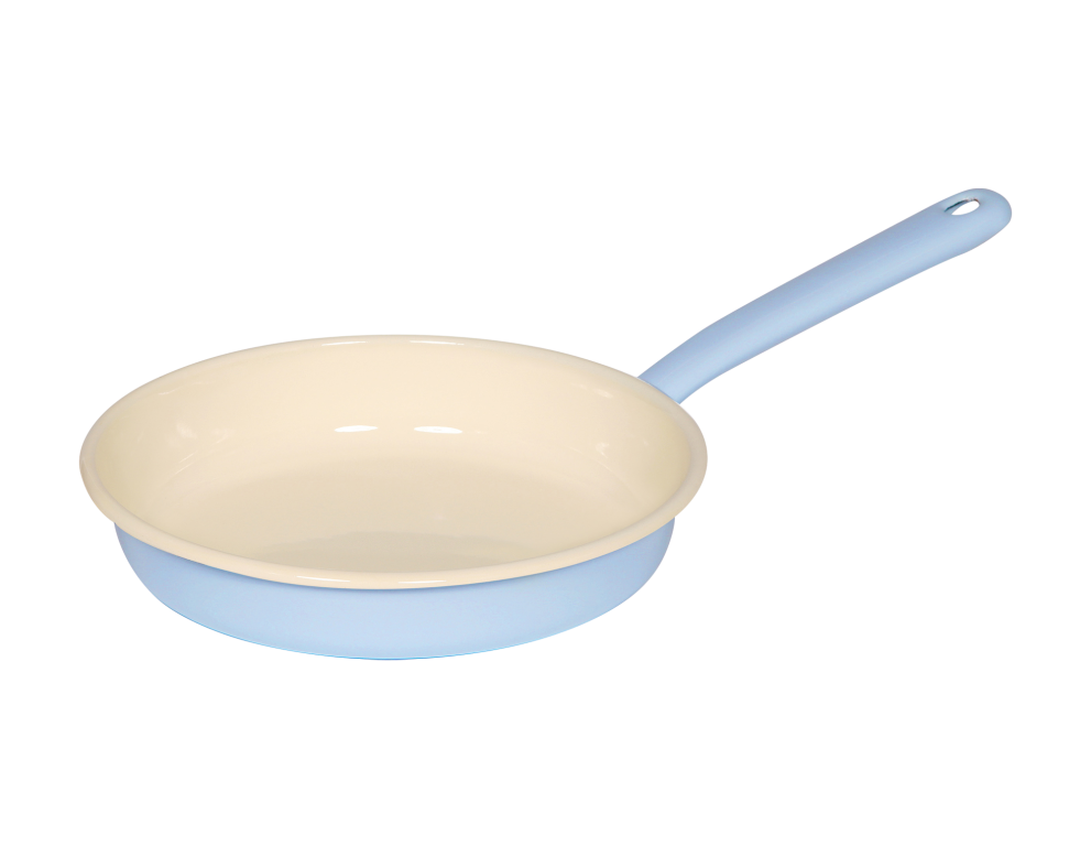 Unsere Omelettpfanne ist perfekt für verschiedenste Eiergerichte wie Omeletts, Rührei, Eierspeis und Spiegelei. Sie hat die ideale Größe für diese Zubereitungen und dank des Eisenkerns wird die Hitze optimal und schnell am Pfannenboden verteilt, wodurch sie bei Bedarf rasch reduziert werden kann. Dies ist besonders wichtig, da Eiergerichte keine hohen Temperaturen vertragen. Außerdem kann man die Eier direkt in der Pfanne mit einem Messer zerteilen, da Emaille schnitt- und kratzfest ist. Beim Braten von Eiern in der Emaillepfanne benötigt man Butter oder Öl, aber keine zu hohen Temperaturen. Der beste Test ist, einen Tropfen der Ei-Masse in die Pfanne zu geben. Zieht sich der Tropfen sofort zusammen, ist die Pfanne zu heiß; passiert nichts, ist sie zu kalt. Sobald der Tropfen leicht stockt, hat die Pfanne die optimale Temperatur erreicht. Nun die gesamte Masse eingießen, die Hitze etwas reduzieren, da Emaille die Hitze speichert, und warten, bis sich das Omelett leicht vom Pfannenboden löst. Erst dann das Omelett wenden.