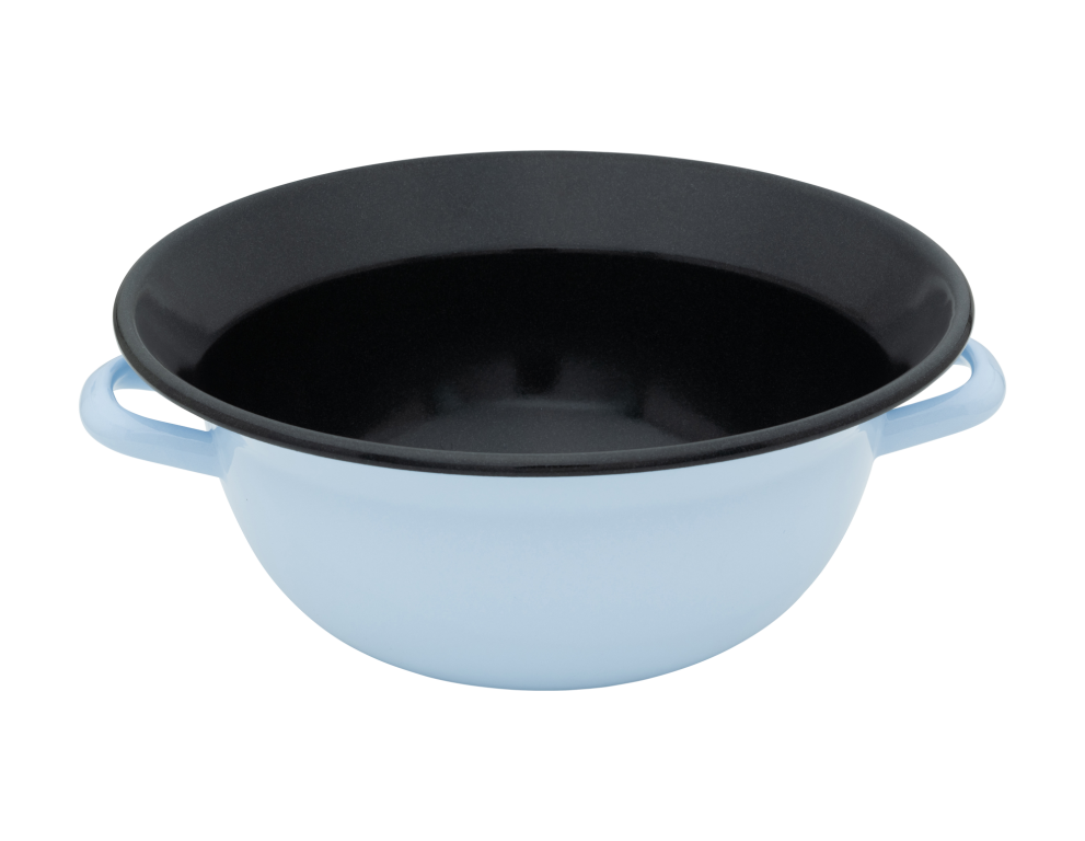 Die typische Form des Weitlings hat in Österreich eine lange Tradition, insbesondere als Teigschüssel. Weitlinge sind Emailleschüsseln mit zwei großen Henkeln, die das Transportieren schwerer Teige erleichtern. Unsere Weitlinge haben alle den typischen Bördelrand. Es gibt sie in verschiedenen Größen, und sie sind vielseitige Helfer beim Backen und Kochen oder als Serviergeschirr. Der Weitling eignet sich nicht nur zum Kneten von Teigen, sondern auch zum Servieren von Salaten oder Obst. In den kleineren Weitlingen lassen sich das morgendliche Müsli zubereiten oder Aufstriche, Nüsse, Knabbergebäck und Kekse servieren. Dunkle Spuren auf der Emaille, die nach dem Gebrauch von Schneebesen oder Mixern entstehen können, sind meist Abrieb von Besteck oder Metallküchenhelfern. Diese lassen sich einfach mit dem RIESS Emaillereiniger oder einer milden Scheuercreme entfernen.