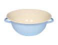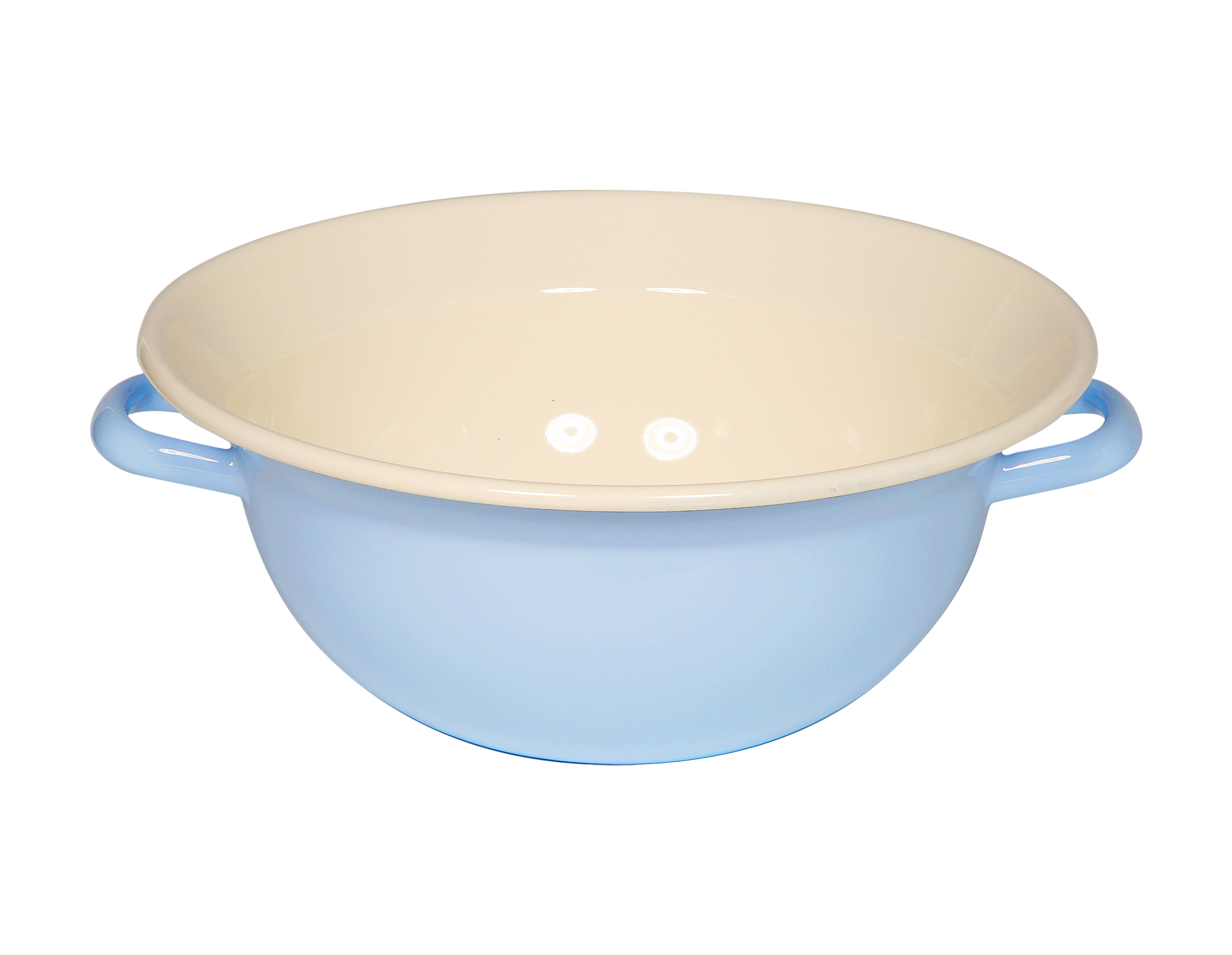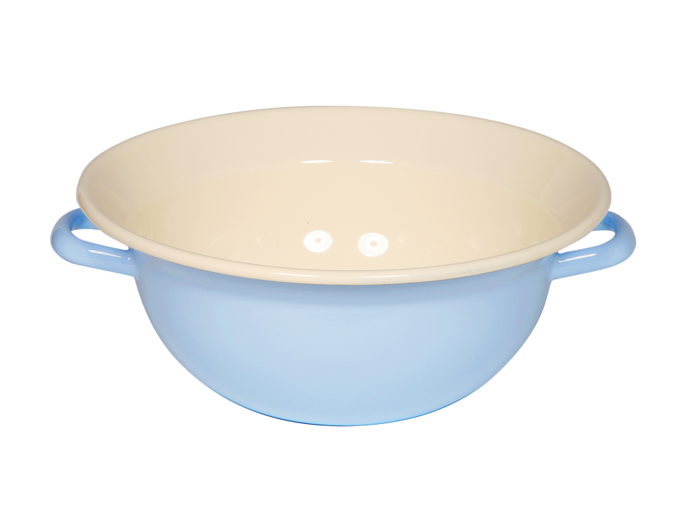 Die typische Form des Weitlings hat in Österreich eine lange Tradition, insbesondere als Teigschüssel. Weitlinge sind Emailleschüsseln mit zwei großen Henkeln, die das Transportieren schwerer Teige erleichtern. Unsere Weitlinge haben alle den typischen Bördelrand. Es gibt sie in verschiedenen Größen, und sie sind vielseitige Helfer beim Backen und Kochen oder als Serviergeschirr. Der Weitling eignet sich nicht nur zum Kneten von Teigen, sondern auch zum Servieren von Salaten oder Obst. In den kleineren Weitlingen lassen sich das morgendliche Müsli zubereiten oder Aufstriche, Nüsse, Knabbergebäck und Kekse servieren. Dunkle Spuren auf der Emaille, die nach dem Gebrauch von Schneebesen oder Mixern entstehen können, sind meist Abrieb von Besteck oder Metallküchenhelfern. Diese lassen sich einfach mit dem RIESS Emaillereiniger oder einer milden Scheuercreme entfernen.