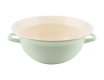 Die typische Form des Weitlings hat in Österreich eine lange Tradition, insbesondere als Teigschüssel. Weitlinge sind Emailleschüsseln mit zwei großen Henkeln, die das Transportieren schwerer Teige erleichtern. Unsere Weitlinge haben alle den typischen Bördelrand. Es gibt sie in verschiedenen Größen, und sie sind vielseitige Helfer beim Backen und Kochen oder als Serviergeschirr. Der Weitling eignet sich nicht nur zum Kneten von Teigen, sondern auch zum Servieren von Salaten oder Obst. In den kleineren Weitlingen lassen sich das morgendliche Müsli zubereiten oder Aufstriche, Nüsse, Knabbergebäck und Kekse servieren. Dunkle Spuren auf der Emaille, die nach dem Gebrauch von Schneebesen oder Mixern entstehen können, sind meist Abrieb von Besteck oder Metallküchenhelfern. Diese lassen sich einfach mit dem RIESS Emaillereiniger oder einer milden Scheuercreme entfernen.