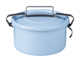 Mit unserer runden Dichtungsdose aus Emaille können Sie Ihre Lieblingsspeisen sicher und bequem überallhin transportieren. Ob ins Büro, zum Picknick oder zum Abendessen mit Freunden – die Speisen werden in die Dose gefüllt, mit der Eisenspange fest verschlossen und mithilfe des Griffs einfach transportiert. Die Gummidichtung im Deckel verhindert das Auslaufen von flüssigem Inhalt. In der geöffneten Dose kann der Inhalt auch sanft auf dem Herd erwärmt werden, wobei der Bügel des Klemmverschlusses als Haltegriff dient. Die runde Aufbewahrungsdose eignet sich hervorragend zur Aufbewahrung von gekochten Speisen. Die porenlose Oberfläche ist resistent gegenüber Fruchtsäuren und Laugen und ist bakterien- und schmutzabweisend, sodass Essensreste hygienisch verwahrt und ihr natürlicher Geschmack bewahrt werden. Für den richtigen Gebrauch der Dichtungsdose gibt es unsere Gebrauchsanweisung und Pflegehinweise. Der Unterteil der Dose kann auch zum Aufwärmen von Speisen verwendet werden, z.B. können bei Campingurlauben zuerst Lebensmittel transportiert und dann in der Dose erwärmt werden. Emaille ist auch für offenes Feuer und Gasbrenner geeignet. Wenn die Dose mit heißem Inhalt verschlossen wird, kann ein Vakuum entstehen und der Deckel lässt sich dann nicht öffnen. Es ist besser, den Speiseninhalt vor dem Schließen abkühlen zu lassen. Sollte ein Vakuum entstanden sein, versuchen Sie nicht, den Deckel mit spitzen Gegenständen zu öffnen. Das Vakuum löst sich von selbst, wenn die Dose mit Inhalt erwärmt wird, und der Deckel kann dann leicht geöffnet werden.