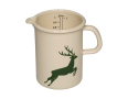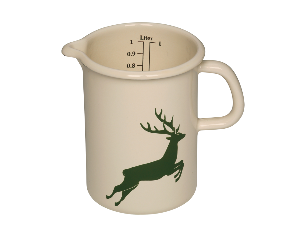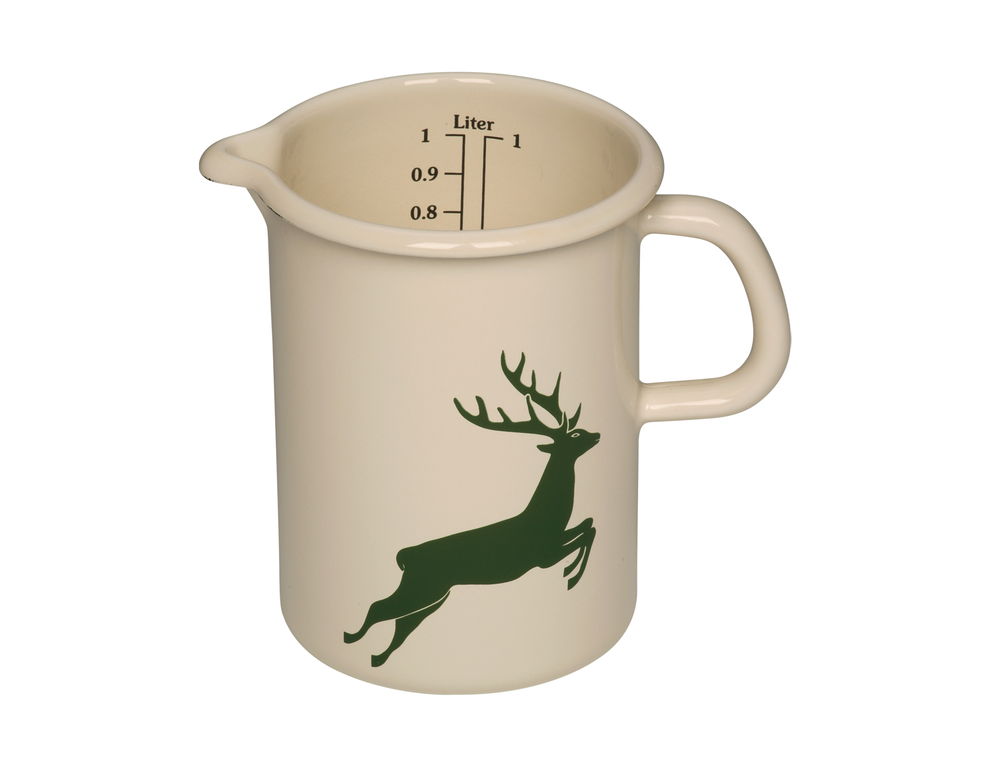Das Küchenmaß oder der Messbecher ist ein unverzichtbares Werkzeug zum Portionieren von Koch- und Backzutaten wie Mehl, Zucker, Milch, Wasser sowie anderen kalten oder heißen Flüssigkeiten. Im Inneren des Messbechers befinden sich zwei Skalen, die einmal Liter in Zentilitern und je nach Größe des Messbechers auch in 1/4 oder 1/8 Liter anzeigen – dies entspricht der traditionellen österreichischen Maßeinheit für Flüssigkeiten. Der Messbecher ist mit einem bequemen seitlichen Griff und einem Ausguss, genannt Schnabel, ausgestattet, der das Ausgießen von Flüssigkeiten erleichtert. Der Emaille-Messbecher eignet sich auch hervorragend zum Erwärmen von genau abgemessenen Flüssigkeiten wie Milch oder Wasser für den Hefeteig oder Suppe für Risotto. Es sollte jedoch mit kleiner Flamme gekocht werden, da der Durchmesser des Bodens sehr klein ist. Beim Erwärmen von Milch empfiehlt es sich, etwas Wasser hinzuzufügen, um Anbrennen zu verhindern.