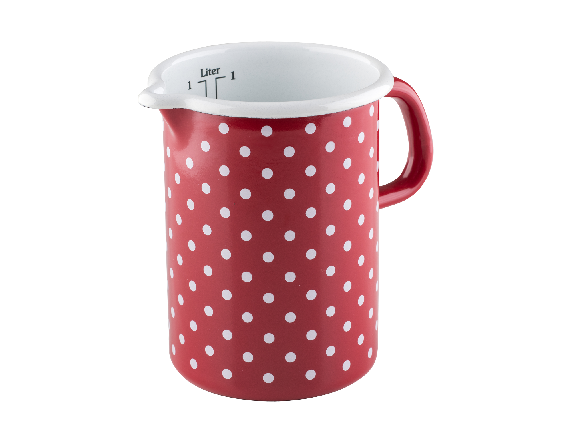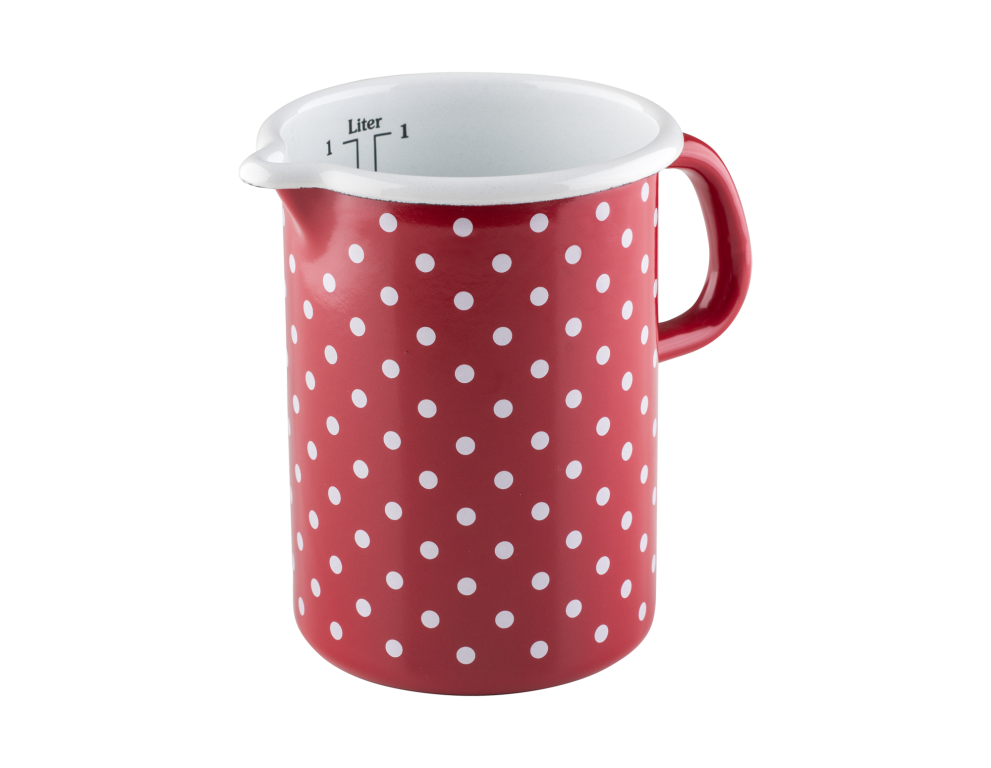 Das Küchenmaß oder der Messbecher ist ein unverzichtbares Werkzeug zum Portionieren von Koch- und Backzutaten wie Mehl, Zucker, Milch, Wasser sowie anderen kalten oder heißen Flüssigkeiten. Im Inneren des Messbechers befinden sich zwei Skalen, die einmal Liter in Zentilitern und je nach Größe des Messbechers auch in 1/4 oder 1/8 Liter anzeigen – dies entspricht der traditionellen österreichischen Maßeinheit für Flüssigkeiten. Der Messbecher ist mit einem bequemen seitlichen Griff und einem Ausguss, genannt Schnabel, ausgestattet, der das Ausgießen von Flüssigkeiten erleichtert. Der Emaille-Messbecher eignet sich auch hervorragend zum Erwärmen von genau abgemessenen Flüssigkeiten wie Milch oder Wasser für den Hefeteig oder Suppe für Risotto. Es sollte jedoch mit kleiner Flamme gekocht werden, da der Durchmesser des Bodens sehr klein ist. Beim Erwärmen von Milch empfiehlt es sich, etwas Wasser hinzuzufügen, um Anbrennen zu verhindern.