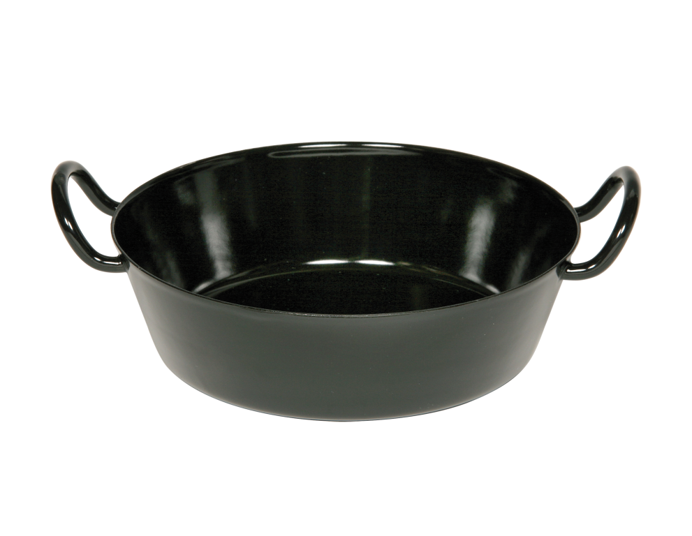 Klassische Pfannen altbewährt in reinstem Schwarz, mit denen alles dank der dunklen Oberfläche besonders braun und knusprig gebacken und gebraten wird.