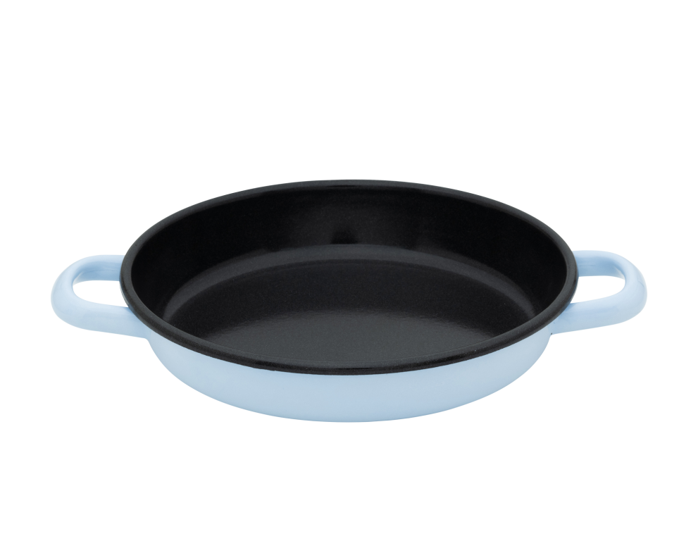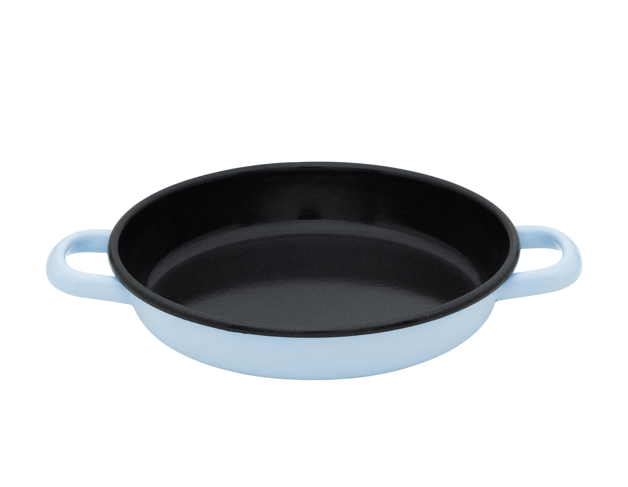 Omelett(e), Rührei, Eierspeis, Spiegelei: Für diese Eiergerichte und viele mehr ist unsere Eierpfanne genau richtig. Sie hat die richtige Größe für Omelette und andere Eiergerichte. Der Eisenkern der Emaillepfanne verteilt die Hitze am Pfannenboden optimal und rasch, sodass die Hitze rasch gedrosselt werden kann, denn Eiergerichte vertragen keine zu hohen Temperaturen. Und sind die Eier fertig gebraten, eignet sich die Pfanne mit ihren zwei Griffen perfekt als Servierpfanne, aus der auch gegessen werden kann, denn Emaille ist schnitt- und kratzfest.