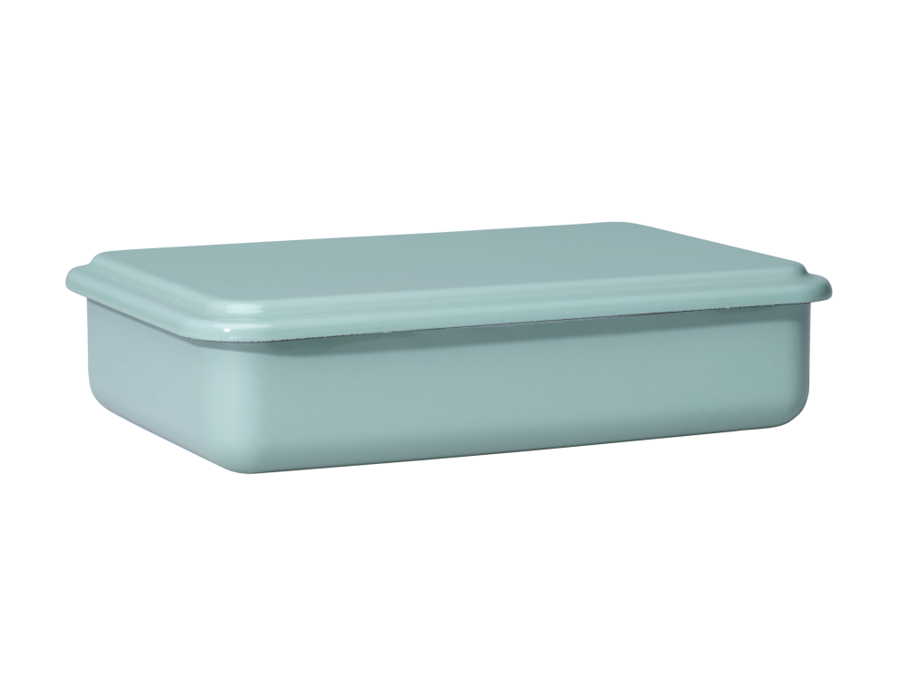 Die SERVE+STORE Vorratsbehälter sind nachhaltige und stilvolle Küchenbasics, ideal für Ordnung in der Küche und im Kühlschrank sowie für das stilvolle Servieren. Sie bestehen aus rechteckigen Emaille-Behältern mit passenden Deckeln und sind in verschiedenen Größen und Farben erhältlich. Die Behälter sind stapelbar und backofenfest, was sie vielseitig einsetzbar macht – vom Aufbewahren und Servieren bis hin zum Backen und Gratinieren. Die Deckel können auch separat als Untersetzer, Schüssel oder Servierplatte verwendet werden. Gekochte und ungekochte Lebensmittel lassen sich sowohl im Behälter als auch auf dem Deckel im Kühlschrank aufbewahren und danach direkt servieren. Die Behälter eignen sich auch für die Verwendung im Backofen und Gefrierfach. Darüber hinaus können sie bei niedriger Hitze auf dem Herd zum Erwärmen von Speisen genutzt werden.