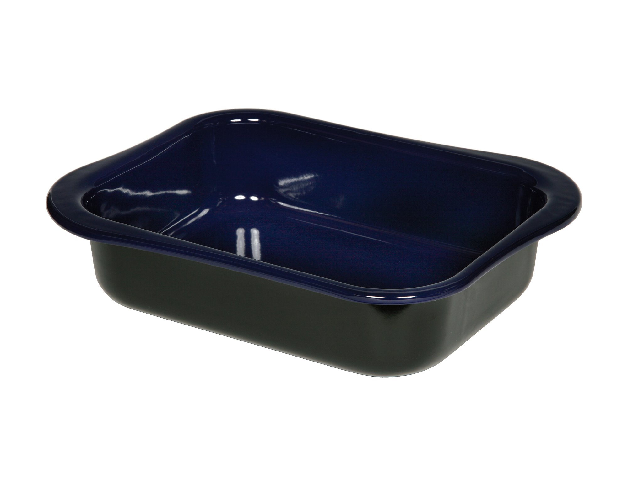 Die Wavehandle Bratpfanne besticht durch ihre charakteristische Form, mit einer schwarz emaillierten Außenseite und einer blau emaillierten Innenseite. Der Rand ist zu den Ecken hin wellenförmig geschwungen, was einen optimalen Griff bietet und das sichere Heben der Bratpfanne in und aus dem Ofen ermöglicht. Diese Emaille-Bratform bietet reichlich Platz für verschiedene Gerichte, die im Backrohr gebacken oder gebraten werden sollen. In der Pfanne kann problemlos mit einem Messer geschnitten werden. Nach Gebrauch lässt sich die Wavehandle Bratpfanne aus Emaille einfach reinigen und ist schnell wieder einsatzbereit. Ob Braten, Brathühnchen, Kuchen oder Aufläufe – die praktische Wavehandle Bratpfanne mit hohem Rand ist vielseitig einsetzbar. Dank des charakteristischen Wavehandle Rands ist sie auch ideal für Gerichte mit viel Sauce oder hohem Inhalt geeignet.