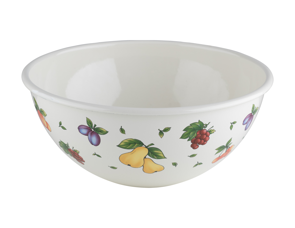 Unsere großen Emailleschüsseln mit Bördelrand sind vielseitige und beliebte Küchenhelfer, die den reinen Geschmack der Speisen bewahren. Dank ihres stapelbaren Designs lassen sich die Schüsseln platzsparend verstauen. Sie eignen sich hervorragend als Obst- und Salatschüsseln und werden häufig beim Backen als Teigschüsseln verwendet. Diese großen Emailleschüsseln sind vielseitige Küchenutensilien und ideal für Obst, Salat, das Rühren von Teig und vieles mehr. Dunkle Spuren auf der Emaille, meist Abrieb von Besteck oder Metallküchenhelfern, lassen sich einfach mit dem RIESS Emaillereiniger oder einer milden Scheuercreme entfernen.