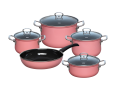 - bestehend aus: Fleischtopf mit Glasdeckel (16,20 und 24 cm) Kasserolle mit Glasdeckel (20 cm), Bratpfanne mit Kunststoffgriff (28 cm)
