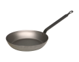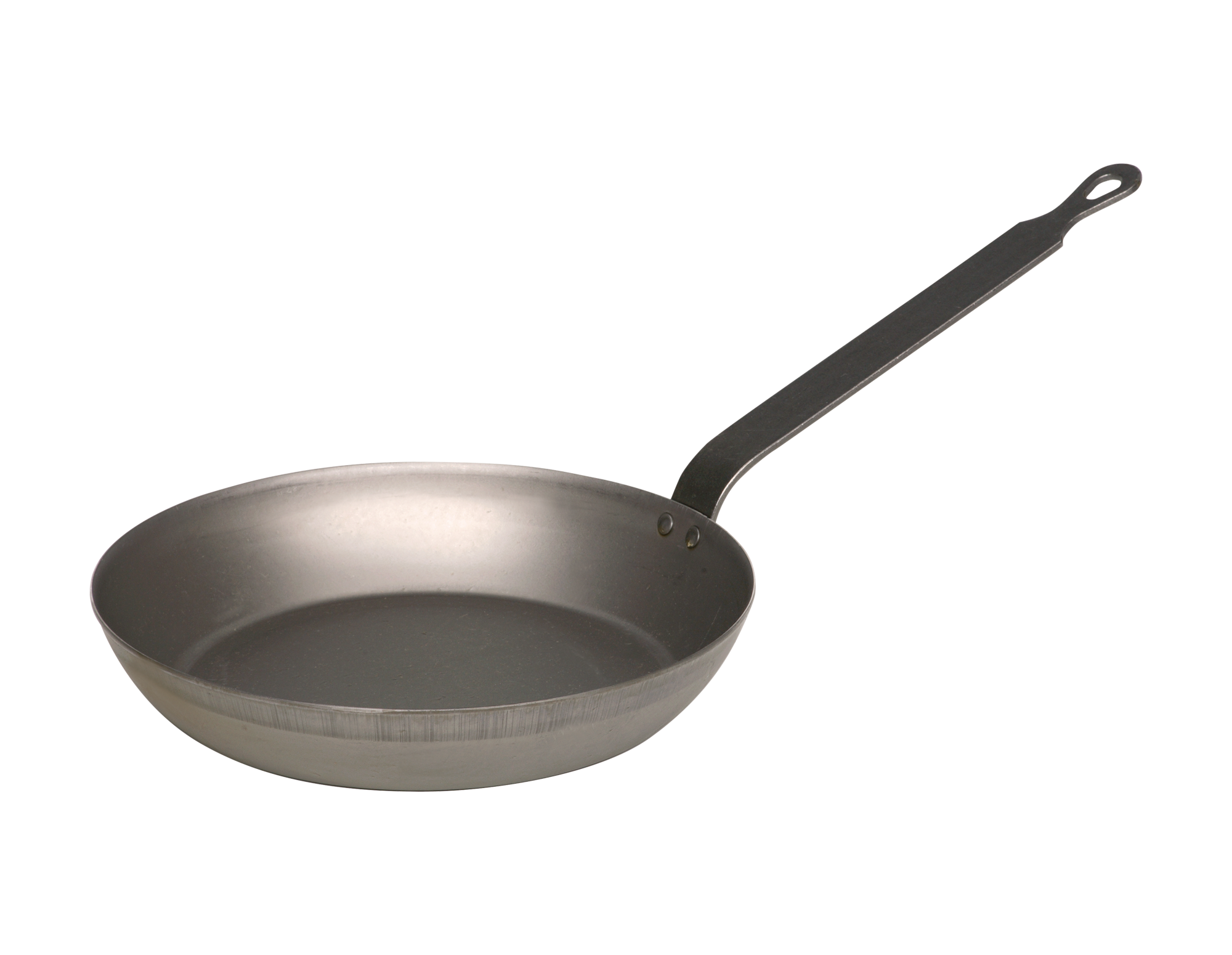 Unsere Eisenpfannen werden kaltgeschmiedet, indem eine ausgestanzte Stahlblechscheibe unter hohem Druck in eine Tiefziehform gepresst wird. An den Pfannenkörper wird ein Stiel befestigt, der immer eine Aufhängevorrichtung hat, damit die Pfanne wie früher üblich hängend aufbewahrt werden kann. Eisenpfannen sind bei Köchen nicht nur wegen ihres rustikalen Aussehens beliebt, sondern vor allem wegen ihrer exzellenten Brateigenschaften. Dank der schnellen Wärmeleitung von Eisen sind sie ideal zum scharfen Anbraten, was Bratkartoffeln und Fleisch besonders knusprig macht. Oft wird die Eisenpfanne auch als Servierpfanne verwendet, häufig in Verbindung mit dem „Pfannenknecht“ oder einem runden Brett als Pfannenuntersetzer. Mit der Zeit verbessert sich die Funktion der Pfanne durch die Bildung einer Patina, die durch die poröse Struktur der Pfanne entsteht und als Korrosionsschutz dient. Mit richtiger Pflege, um Rostbildung zu vermeiden, sind RIESS Eisenpfannen treue Begleiter für viele kulinarische Abenteuer. Neben der klassischen Verwendung für Bratkartoffeln, Fleisch oder Nockengerichte kann die Eisenpfanne für alle Gerichte genutzt werden, die eine Pfanne erfordern. Vor dem ersten Gebrauch muss die Wachsschicht, die als Rostschutz dient, mit heißem Wasser entfernt und die Pfanne eingebrannt werden. Nach Gebrauch sollte die Pfanne niemals in den Geschirrspüler gegeben werden. Stattdessen einfach mit einem Küchentuch auswischen. Bei starker Verkrustung mit Wasser, Salz und Bürste reinigen und dann auf der warmen Herdplatte gut trocknen lassen.