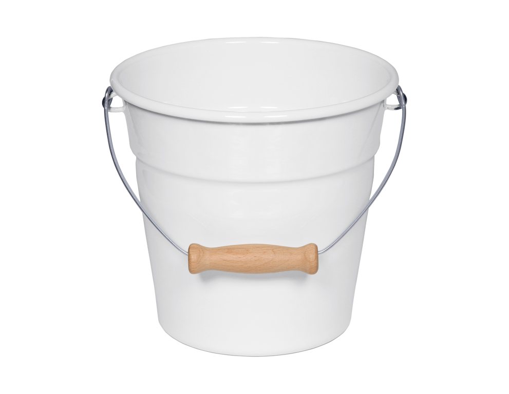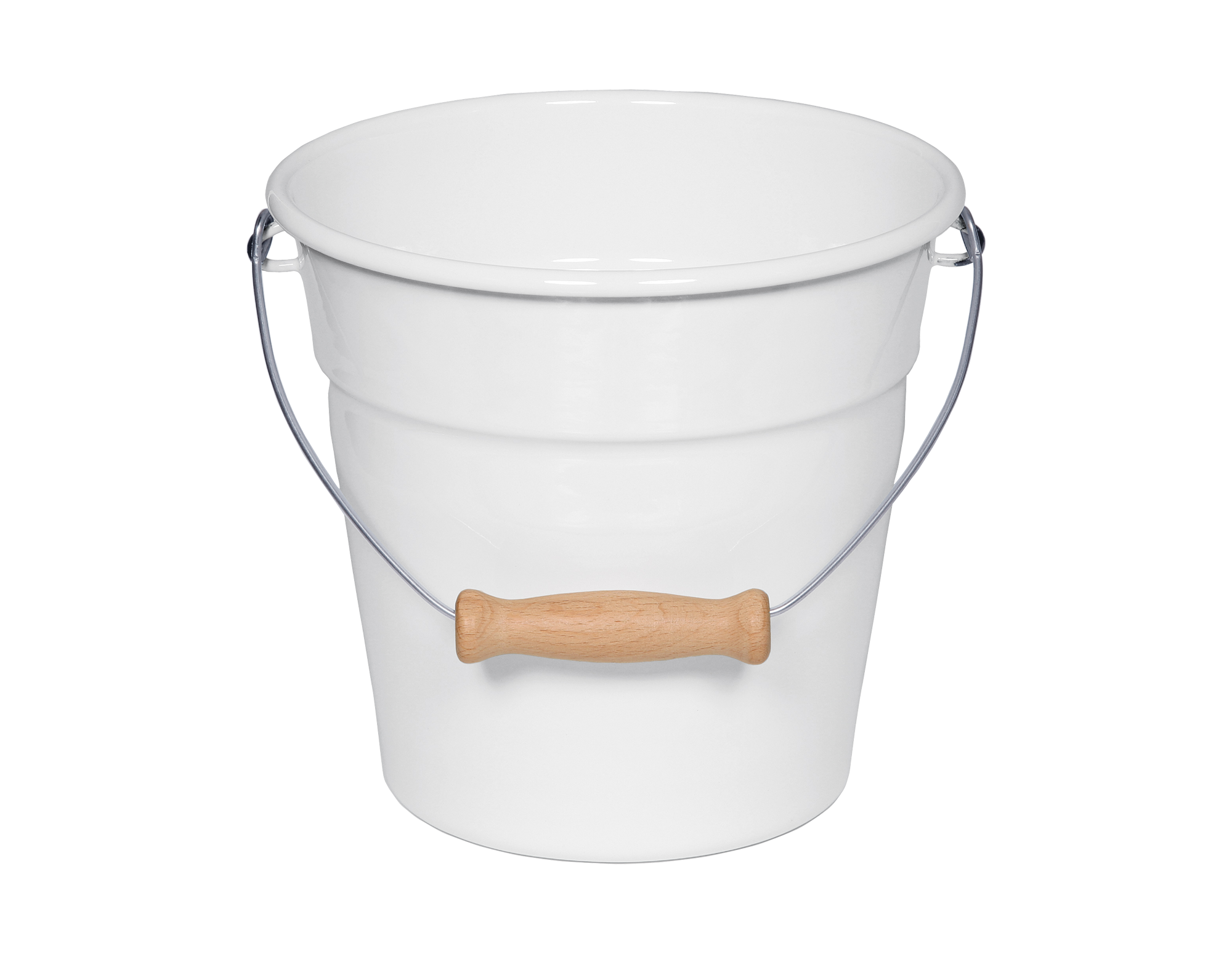Der Minieimer aus Emaille ist ein vielseitiges und dekoratives Produkt, das in vielen Bereichen eingesetzt werden kann. Der nahtlose Korpus des Minieimers wird durch einen rund geschwungenen Bördelrand abgeschlossen, bei dem das Metall gebogen wird, um einen runden und stabilen Rand zu erzeugen. Ein Metallhenkel mit klassischem Tragegriff aus Holz ergänzt das Design und sorgt für bequemen Transport. Der Minieimer eignet sich für viele Verwendungszwecke: Er kann als kleiner Papierkorb, stilvoller Übertopf für Pflanzen, als Mini-Getränkekühler oder praktischer Aufbewahrungsort für Besteck und Servietten genutzt werden, zum Beispiel auf Buffettischen oder in der Küche. Zudem ist er ein nützlicher Sammelbehälter für Küchenabfälle. Durch seine Vielseitigkeit und das nostalgische Design ist der Minieimer aus Emaille nicht nur funktional, sondern auch ein echter Blickfang in jedem Umfeld.