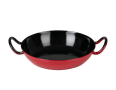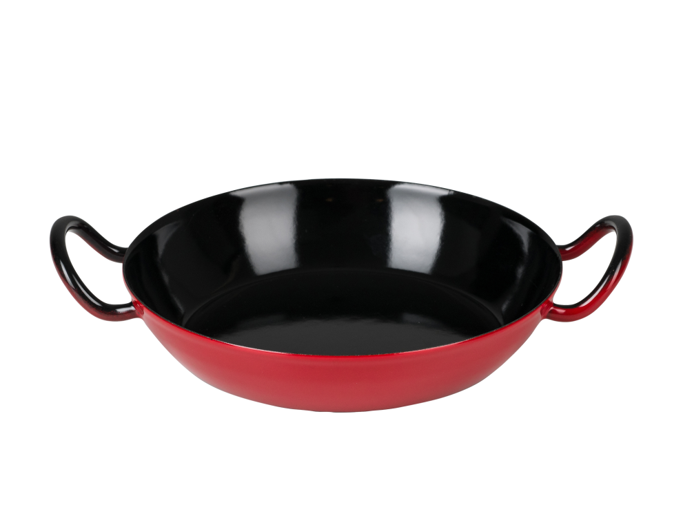 Strahlendes Rot außen – die Farbe der Liebe (die bekanntlich durch den Magen geht) – und klassisches Schwarz innen: Produkte aus roter Emaille in Hülle und Fülle. Einem Koch- und Back- vergnügen in Rot steht somit nichts im Wege.