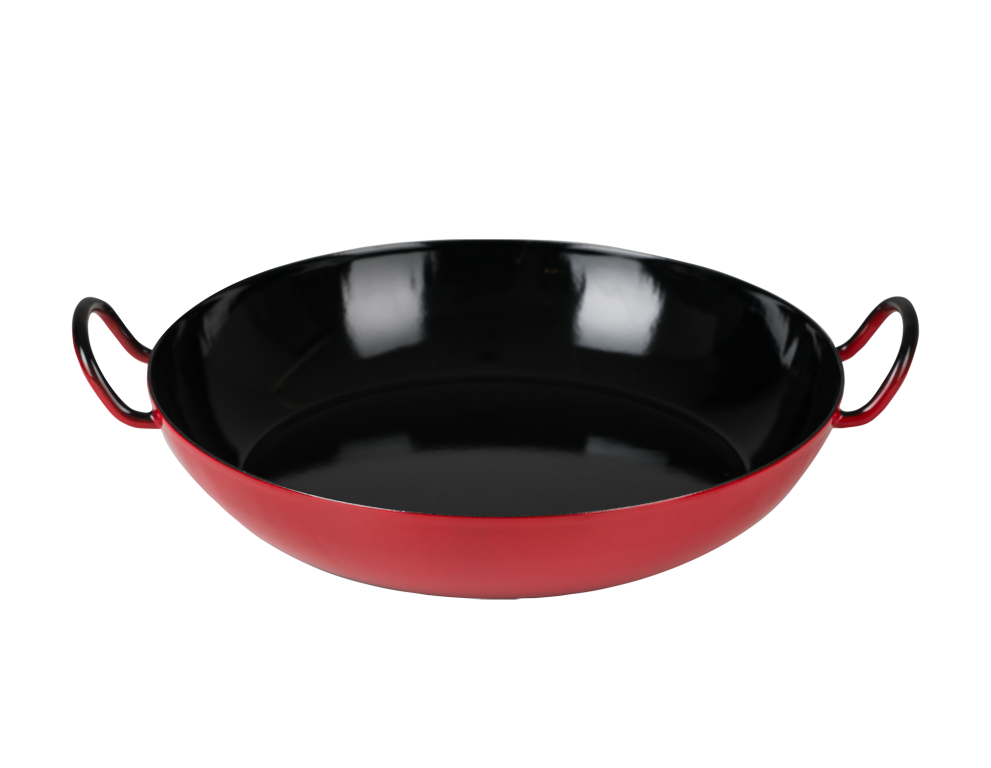 Strahlendes Rot außen – die Farbe der Liebe (die bekanntlich durch den Magen geht) – und klassisches Schwarz innen: Produkte aus roter Emaille in Hülle und Fülle. Einem Koch- und Back- vergnügen in Rot steht somit nichts im Wege.