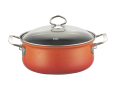 Korallenrot in der Küche, lässt allen Fans warmer Farben das Herz höher schlagen. Töpfe und Kasserollen sind mit starkem Stahl-Wärmespeicherboden, rostfreiem Schüttrand, Edelstahlgriffen und Glasdeckel ausgestattet.