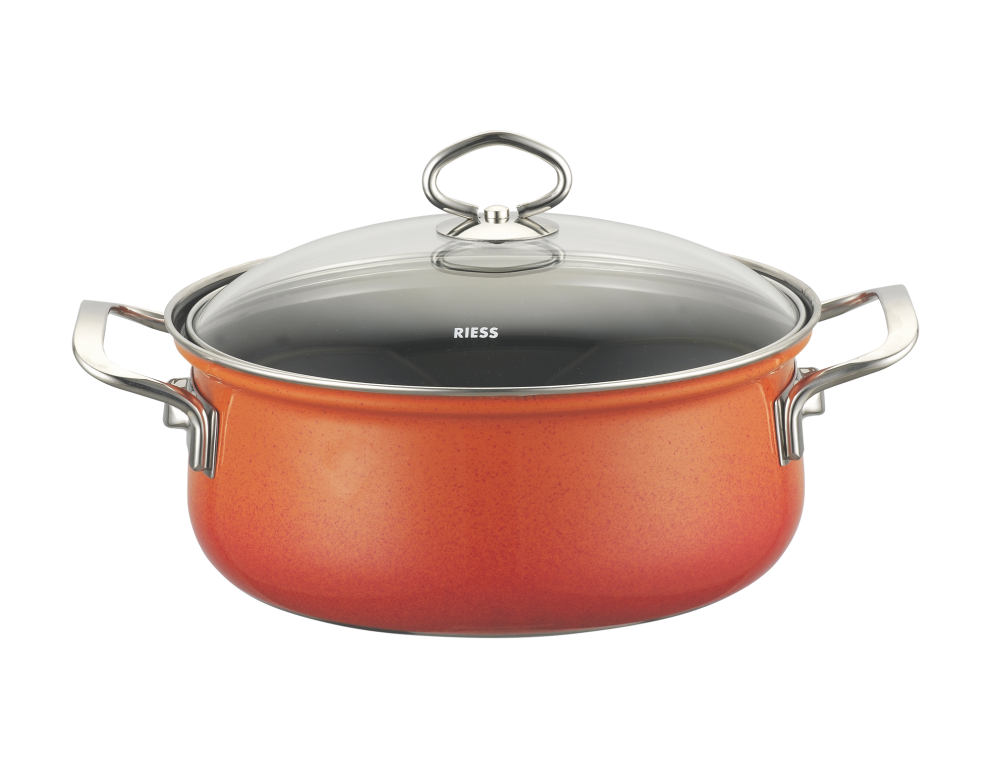 Reinigung im Geschirrspüler: RIESS Emaille kann im Geschirrspüler gewaschen werden. Wir empfehlen die händische Reinigung für lange Freude am strahlenden Glanz von Emaille. Bei Verwendung des Geschirrspülers wählen Sie das schonende Gläserspülprogramm, um Glanz und Leuchtkraft der Emaille lange zu bewahren. Verwenden Sie das schonende Gläserprogramm und Reinigungsprodukte unseres Partners Claro für strahlend saubere Töpfe und Pfannen. Alle Tipps zum Thema Pflege im Geschirrspülter finden Sie in diesem im Video.