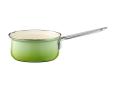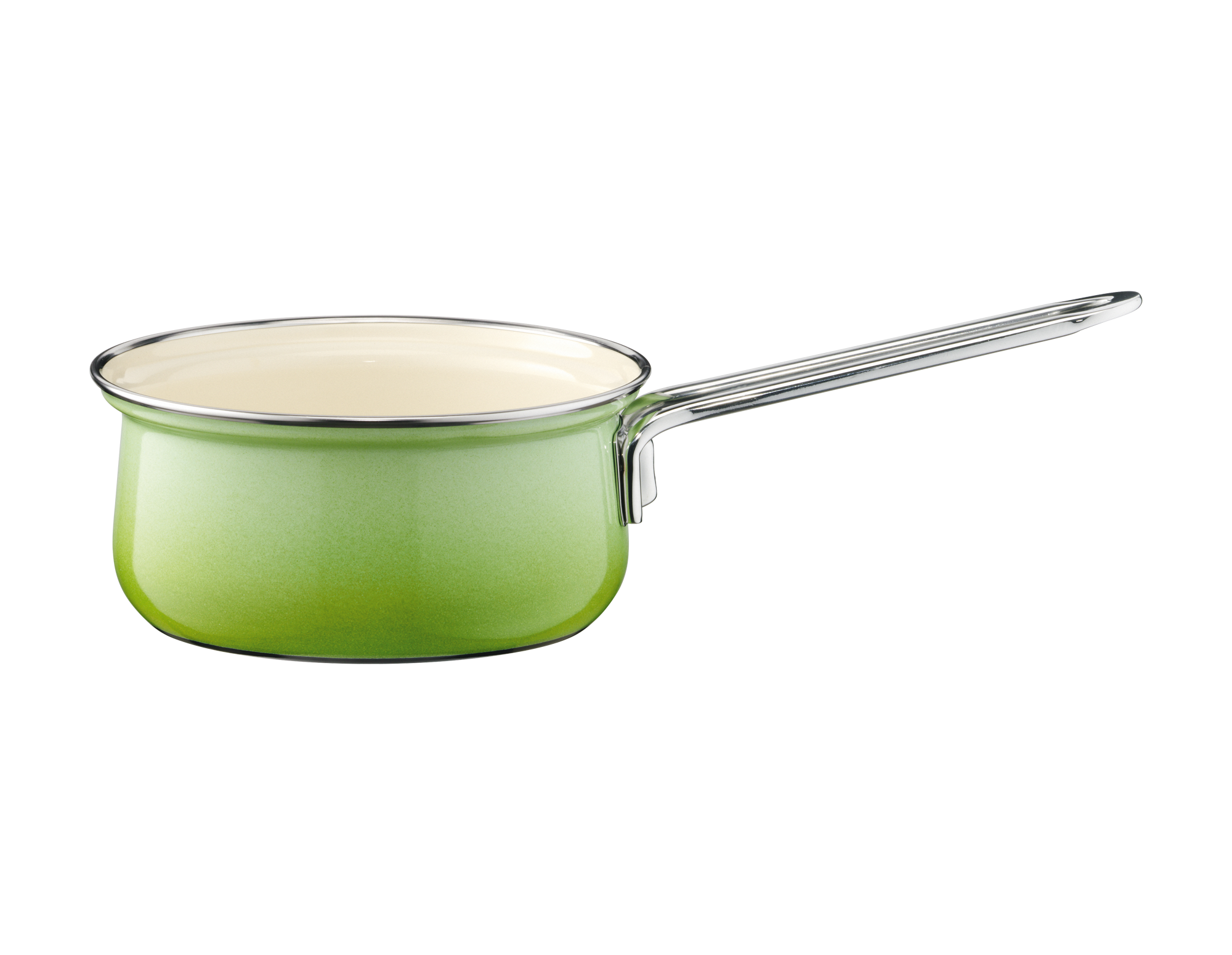 Der Farbton Smaragd ist meisterhaft emailliert in sanften Grün Schattierungen. Töpfe und Kasserollen sind mit starkem Stahl-Wärmespeicherboden, rostfreiem Schüttrand, Edelstahlgriffen und Glasdeckel ausgestattet.