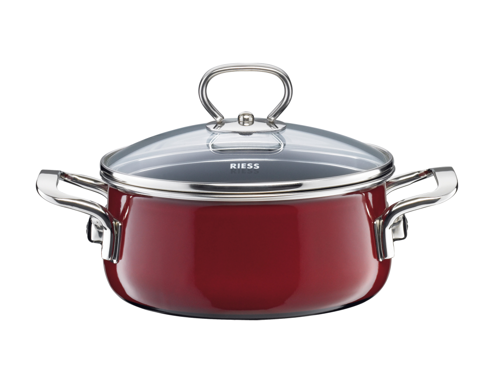 Reinigung im Geschirrspüler: RIESS Emaille kann im Geschirrspüler gewaschen werden. Wir empfehlen die händische Reinigung für lange Freude am strahlenden Glanz von Emaille. Bei Verwendung des Geschirrspülers wählen Sie das schonende Gläserspülprogramm, um Glanz und Leuchtkraft der Emaille lange zu bewahren. Verwenden Sie das schonende Gläserprogramm und Reinigungsprodukte unseres Partners Claro für strahlend saubere Töpfe und Pfannen. Alle Tipps zum Thema Pflege im Geschirrspülter finden Sie in diesem im Video.