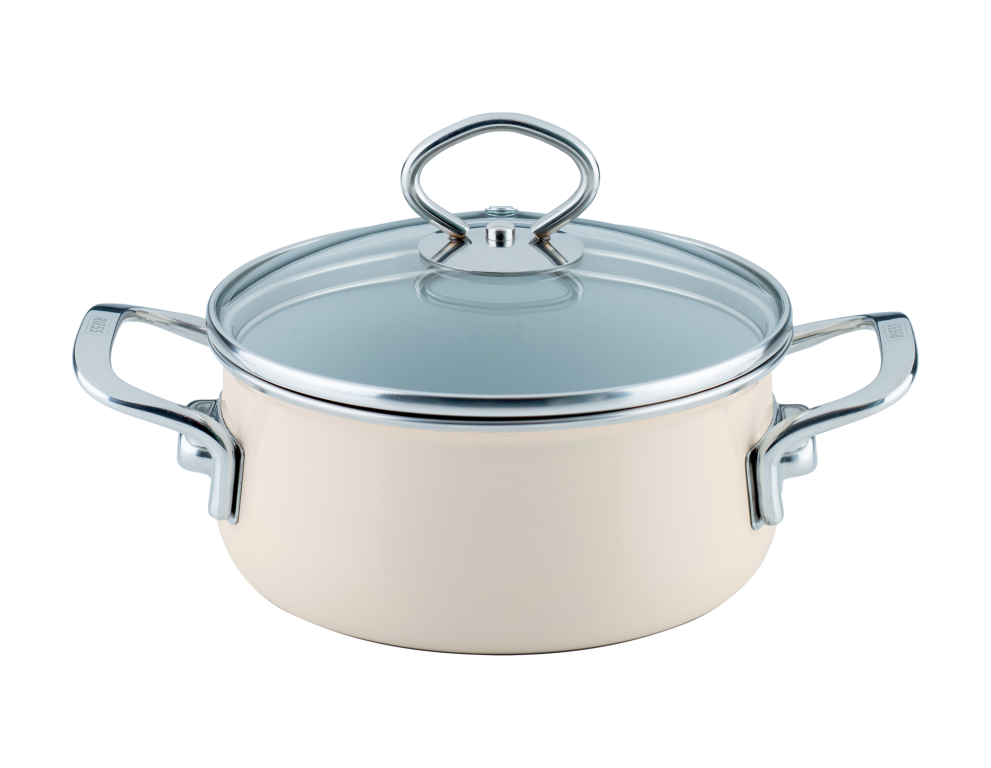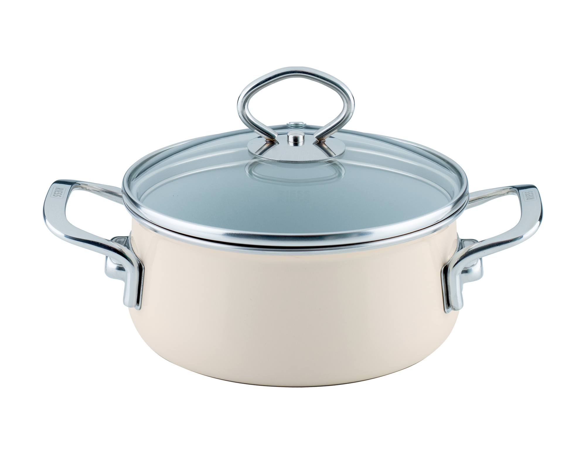 Der Farbton Avorio verleiht jeder Küche einen Hauch von Eleganz und Raffinesse.Top-Qualität mit extra starkem Stahl-Wärmespeicherboden für besonders energieeffizientes Kochen, rostfreiem Schüttrand, Edelstahlgriffen und Glasdeckel.