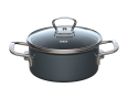 Der edle Grauton verleiht jeder Küche eine moderne, stilvolle Note und sieht am Tisch gut aus. Die Emailletöpfe und -kasserollen haben eine klassische zylindrische Form, rostfreien Schüttrand, Edelstahlgriffe und Glasdeckel. Der extra starke Stahl-Wärmespeicherboden gewährleistet besonders energieeffizientes Kochen.