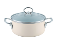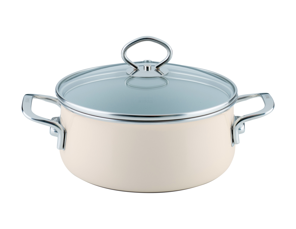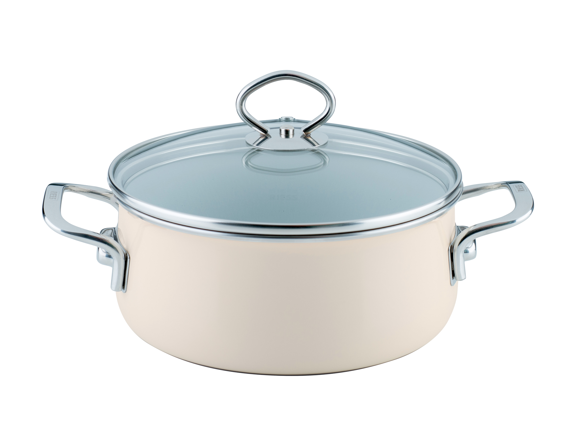 Der Farbton Avorio verleiht jeder Küche einen Hauch von Eleganz und Raffinesse.Top-Qualität mit extra starkem Stahl-Wärmespeicherboden für besonders energieeffizientes Kochen, rostfreiem Schüttrand, Edelstahlgriffen und Glasdeckel.