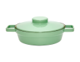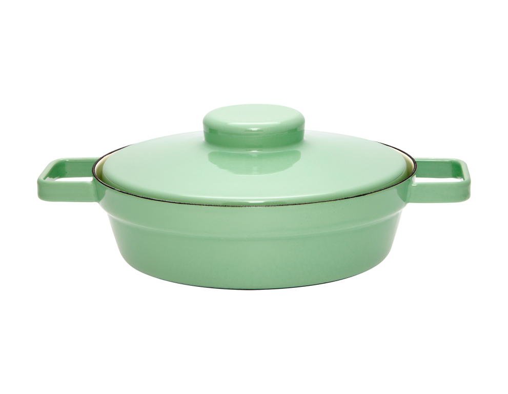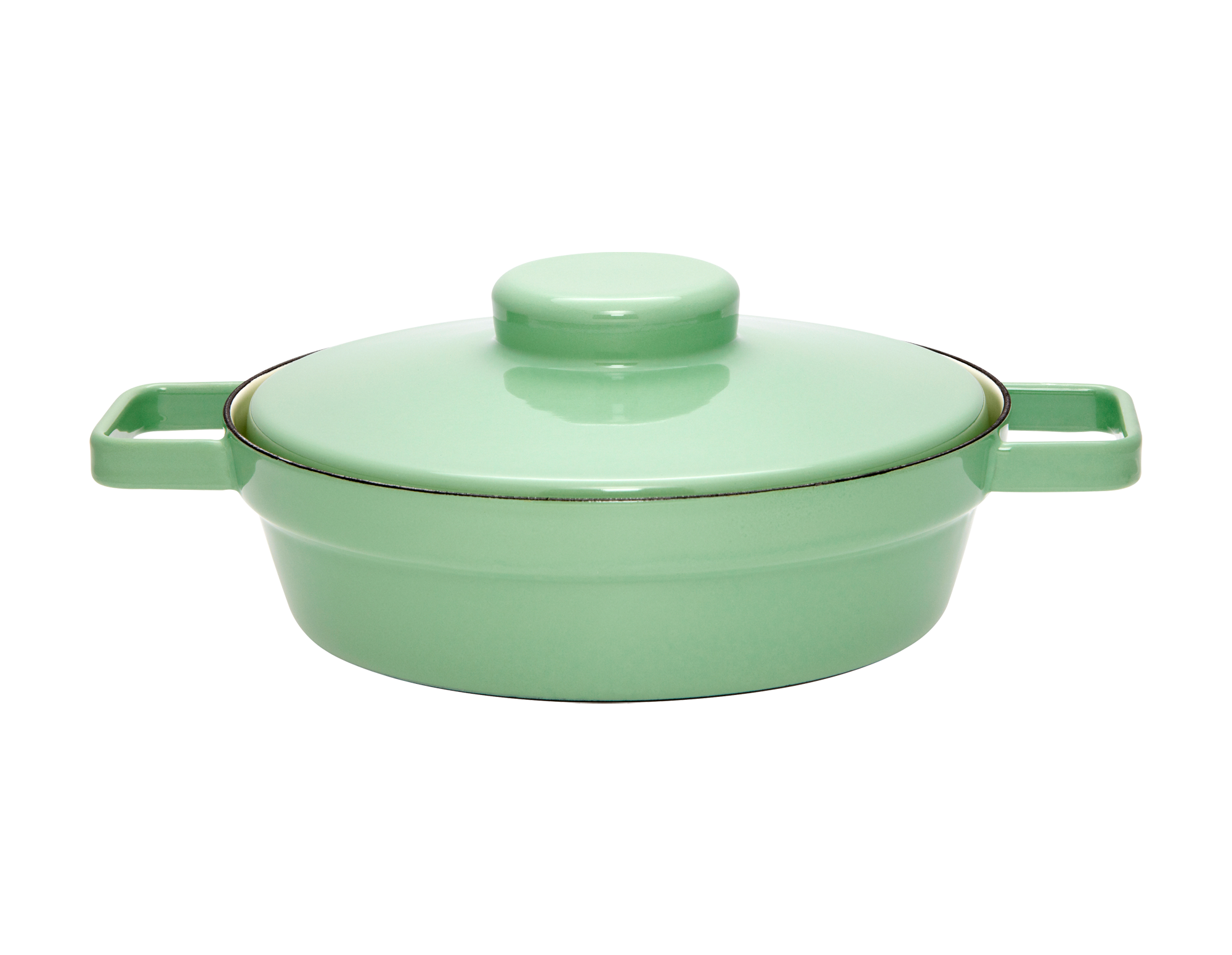 Die Aromapots Pfannen zeichnen sich durch ihr zeitloses und schlichtes Design aus. Hergestellt aus 100% Stahl und Emaille, eignen sich die Aromapots sowohl als Pfanne als auch als Backform. Sie sind frei von angeschraubten Kunststoffteilen, wodurch sie auch bei hohen Temperaturen auf jedem Herd und im Backofen verwendet werden können. Um eine gleichmäßige Ausdehnung des Materials zu gewährleisten und Abplatzungen der Emailleglasur zu vermeiden, sollten die Pfannen stets bei niedriger Hitze erwärmt und erst nach kurzer Zeit auf höhere Temperaturen gestellt werden. Die konische Form der Aromapots ermöglicht ein platzsparendes Stapeln, sowohl ineinander als auch aufeinander. Der Deckel kann umgedreht als Zwischenablage, Schüssel oder Teller für Zutaten, Kochlöffel und andere Utensilien genutzt werden. Am Tisch dient er als Untersetzer, und beim Stapeln nimmt er, umgekehrt aufgesetzt, wenig Platz ein. Der kreativen Verwendung der Aromapots Pfannen sind keine Grenzen gesetzt: Steaks, Gemüse und Eiergerichte gelingen ebenso gut wie Quiches und Kuchen im Backofen. Um Rostbildung zu verhindern, sollte der Rand der Pfanne regelmäßig mit etwas Pflanzenöl eingerieben werden.